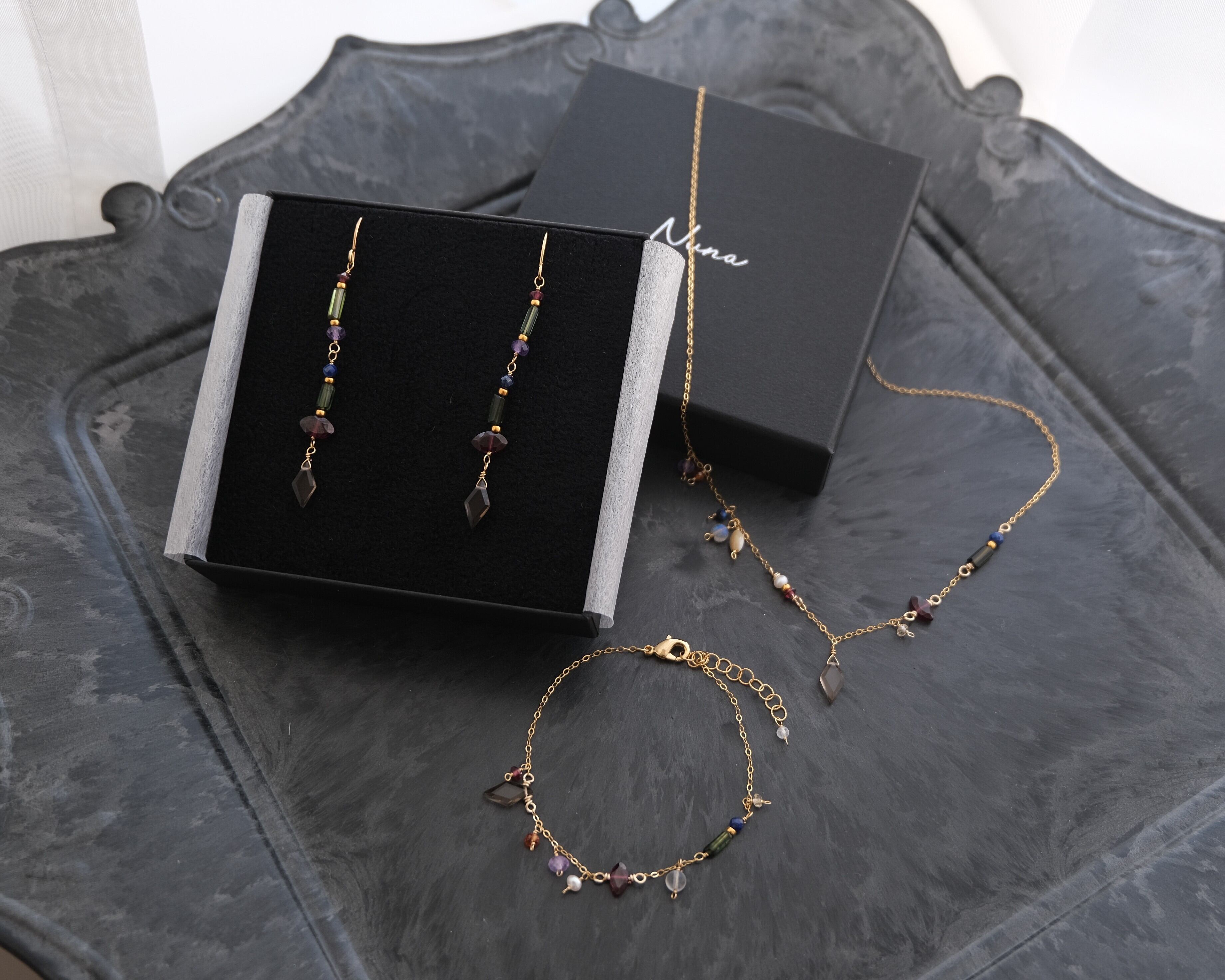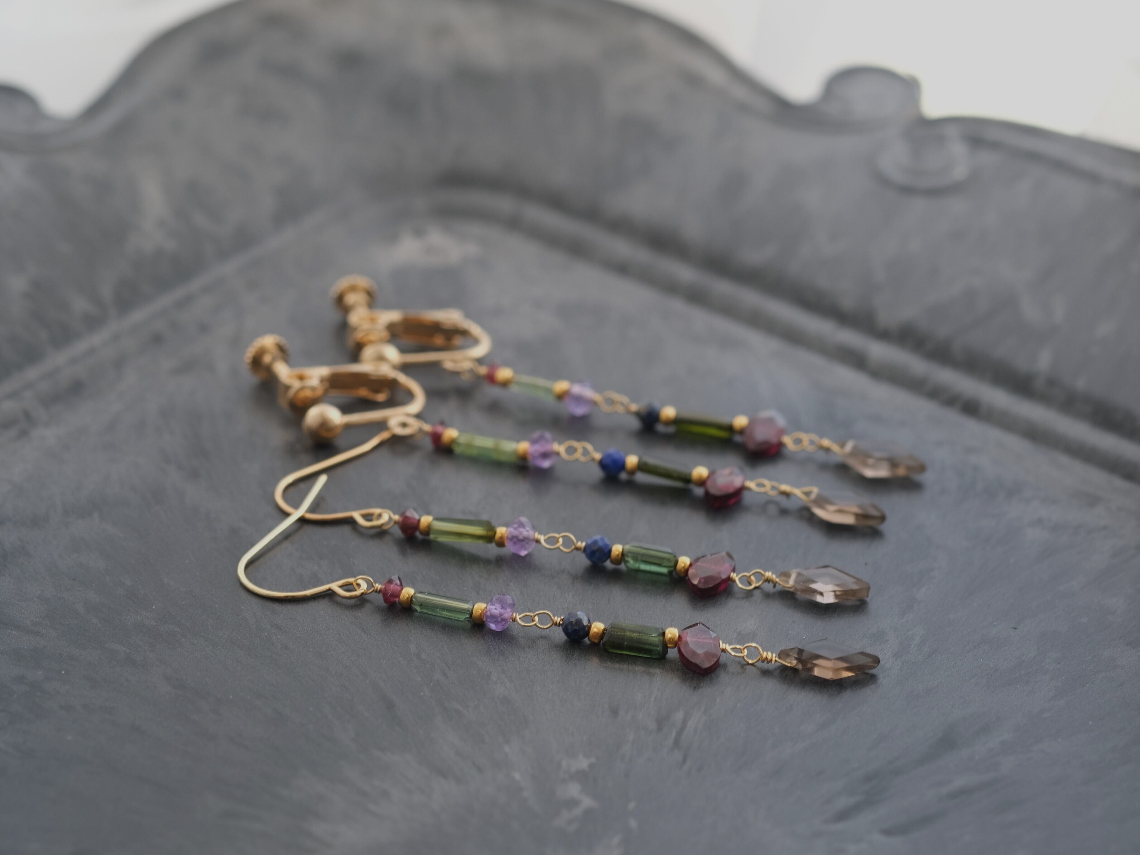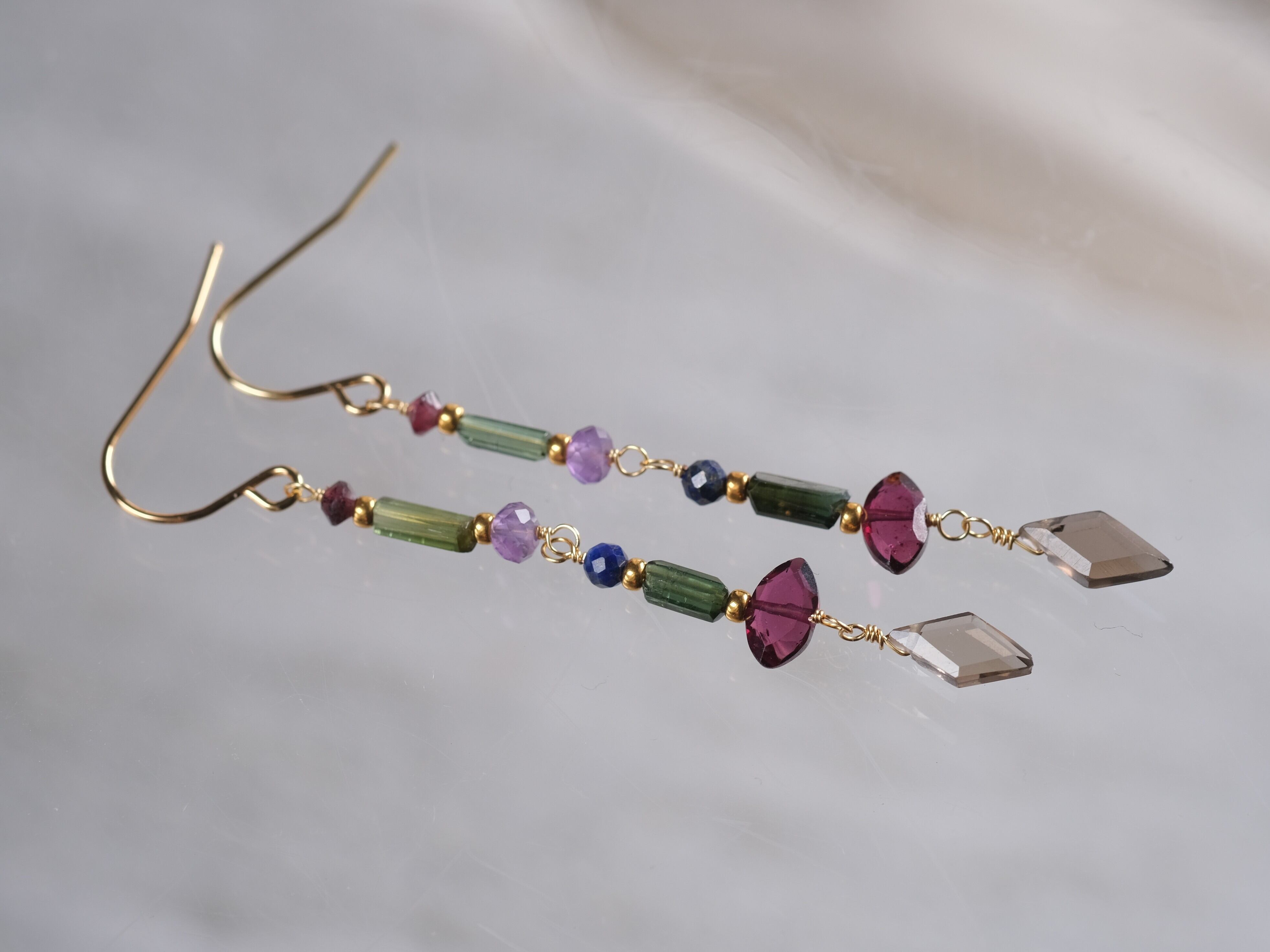 hátíð earring 天然石ロングピアス&イヤリング スモーキークォーツ ガーネット ラピスラズリ トルマリン