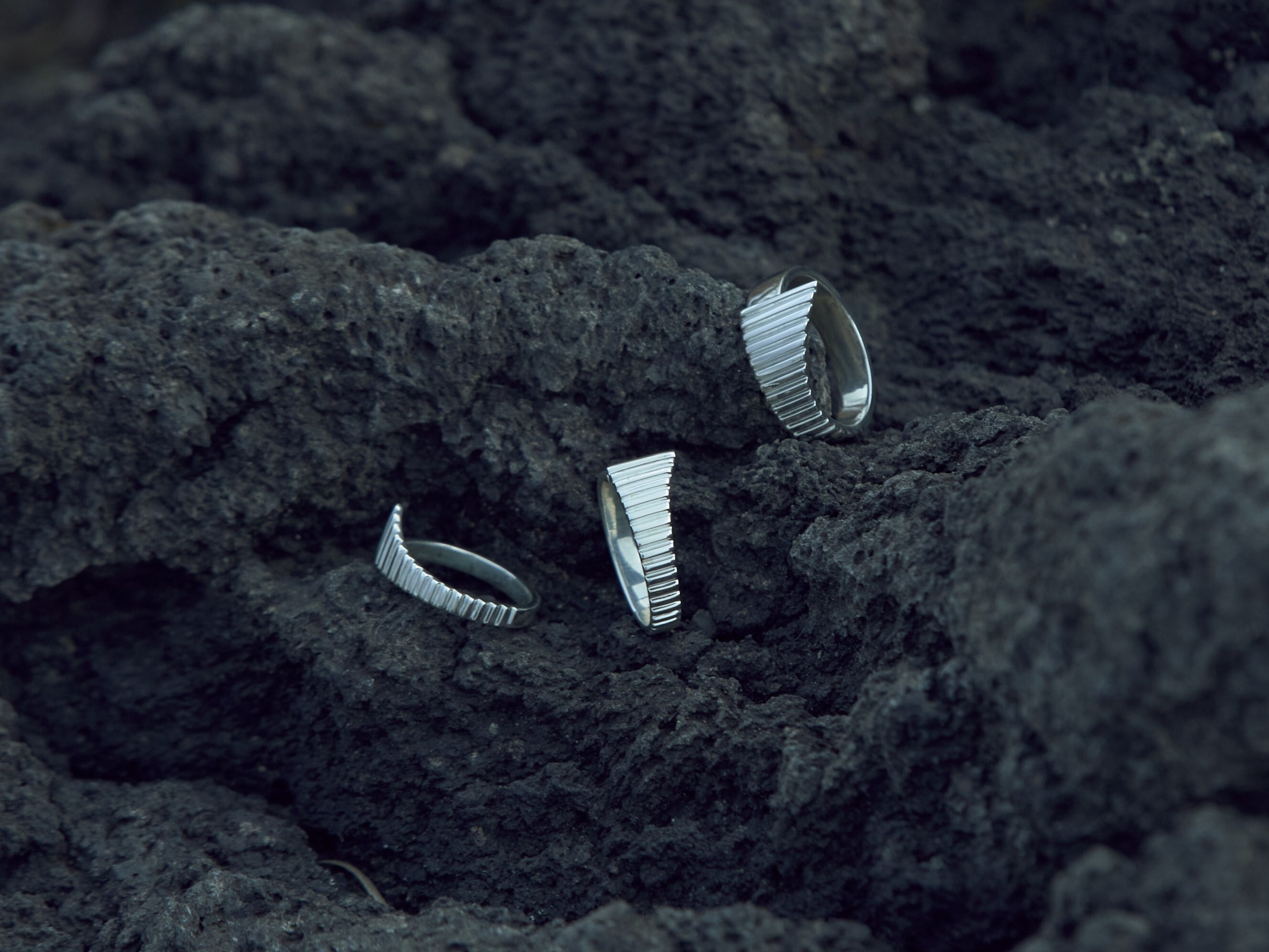 アイスランドならではの自然や建築の美しさが感じられるモチーフをシルバーリングに落とし込みました。