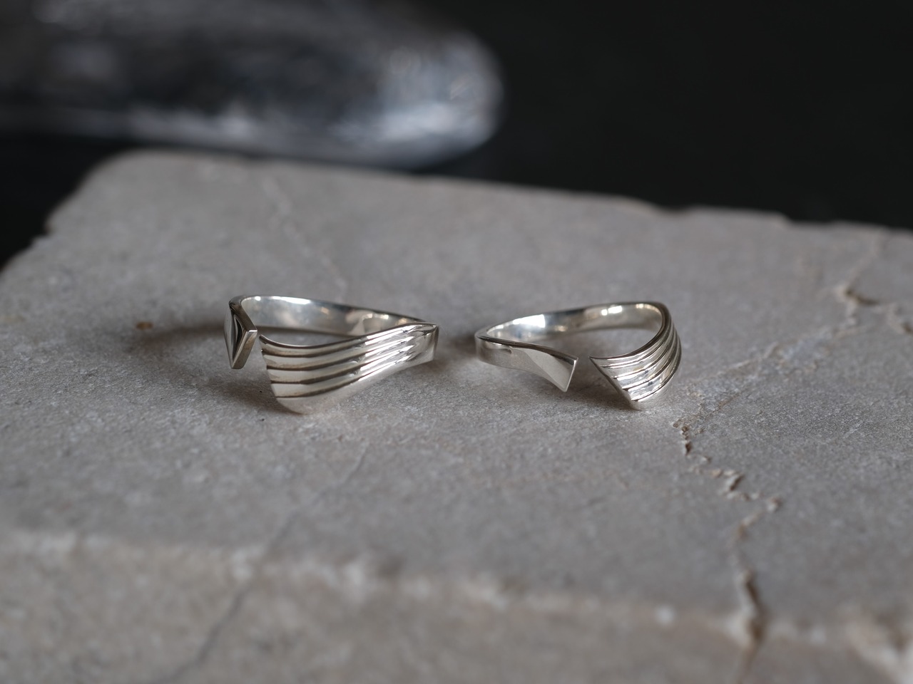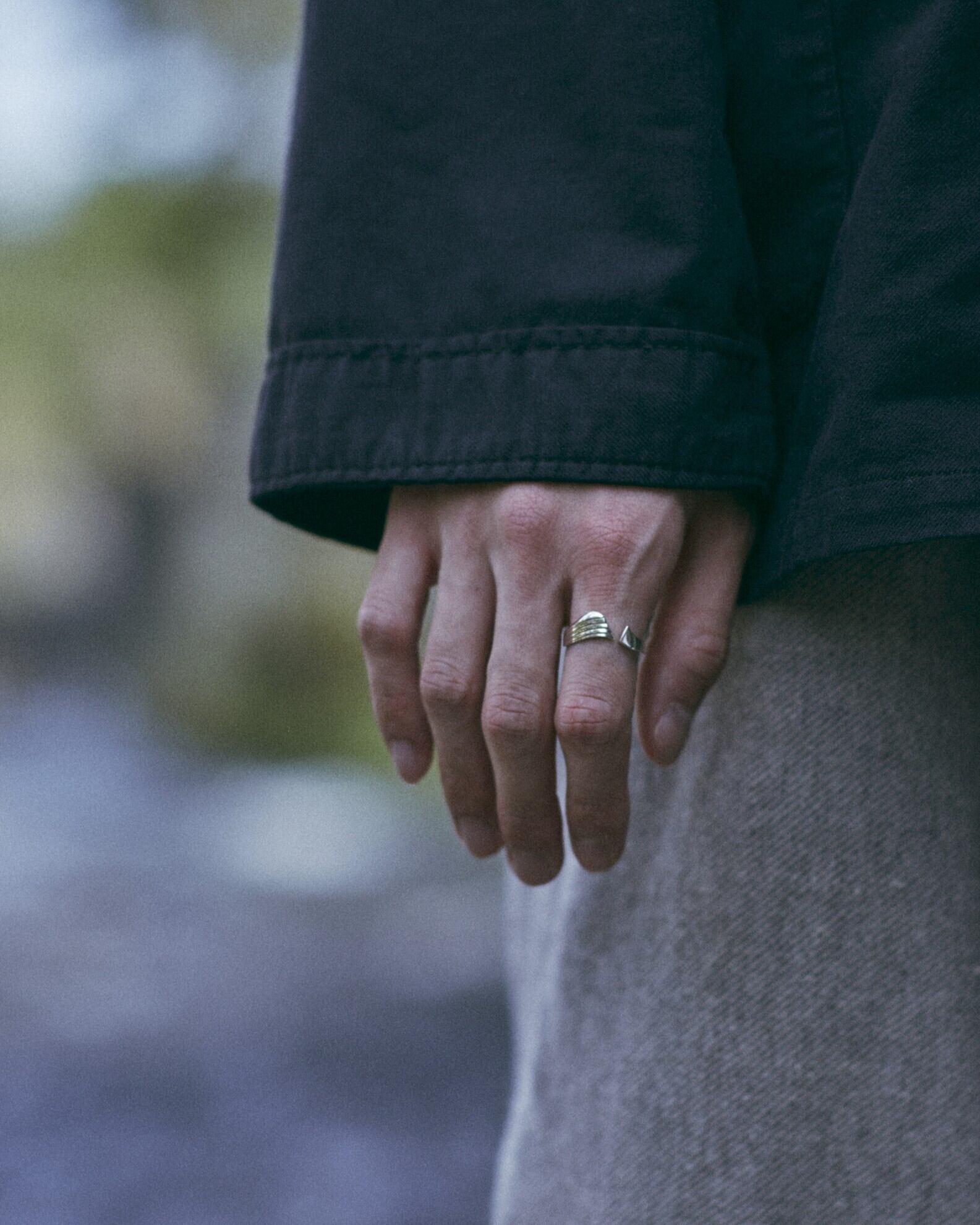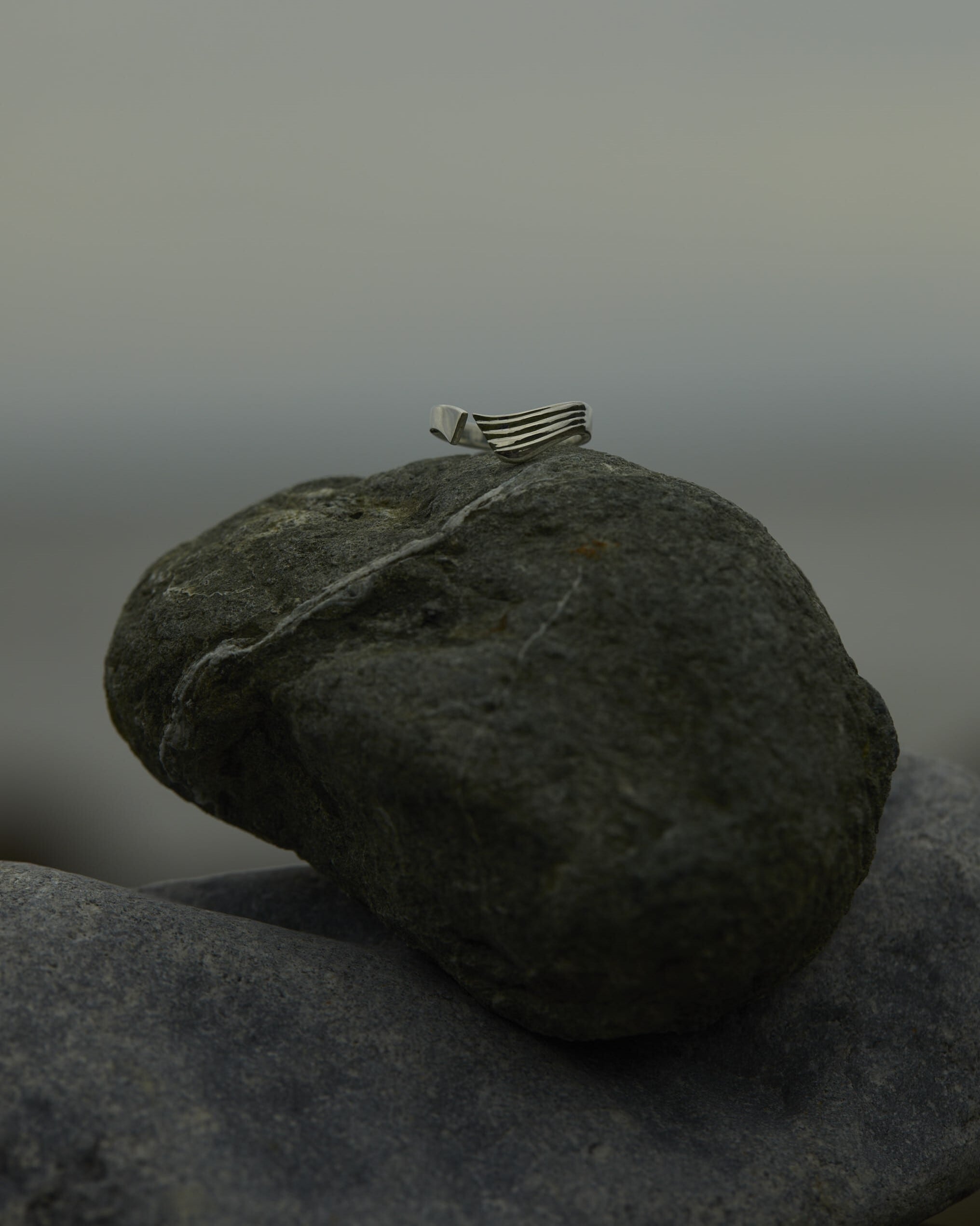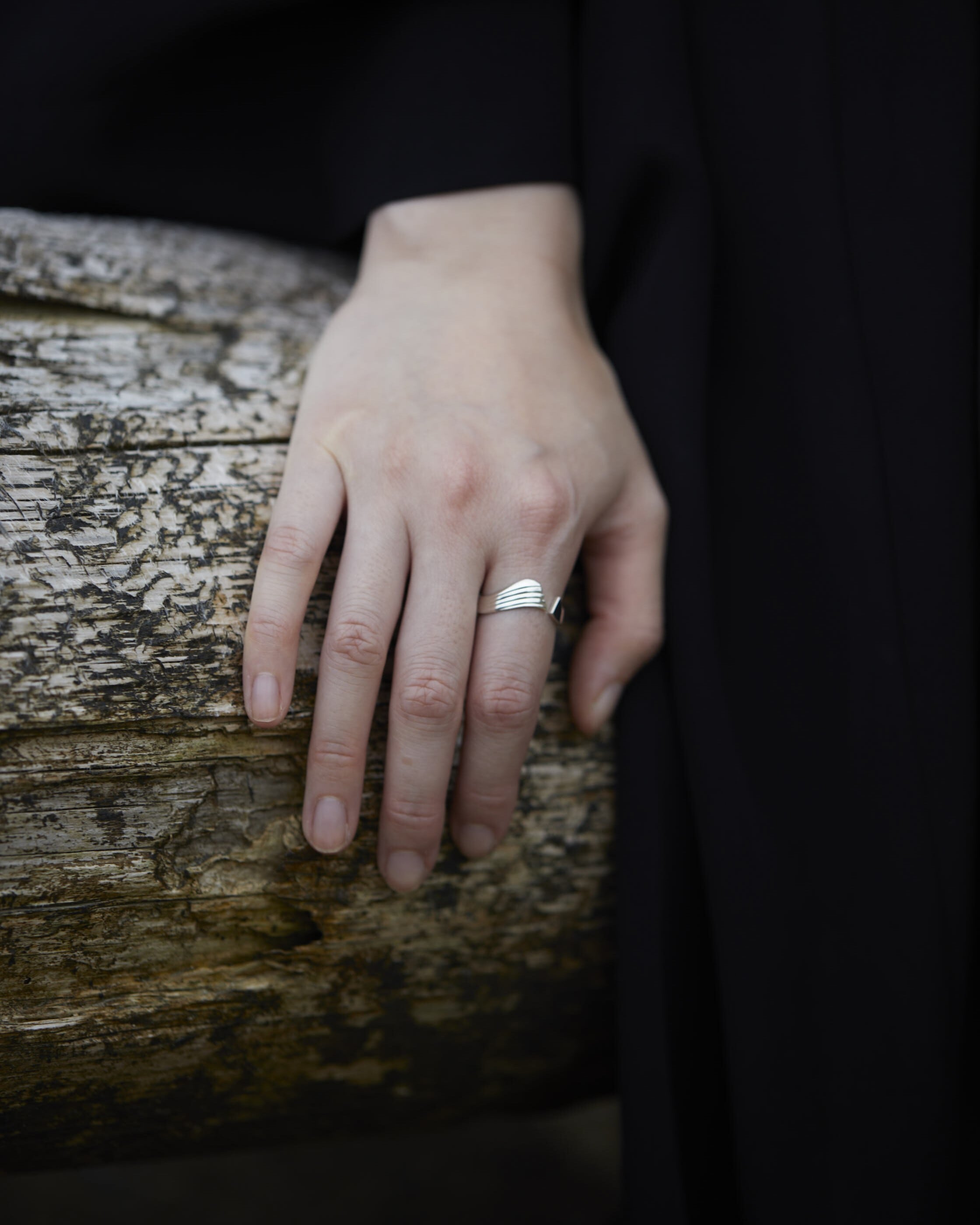 連なる板材や錨・オールを彷彿させるモチーフを落とし込んだシルバーリング。