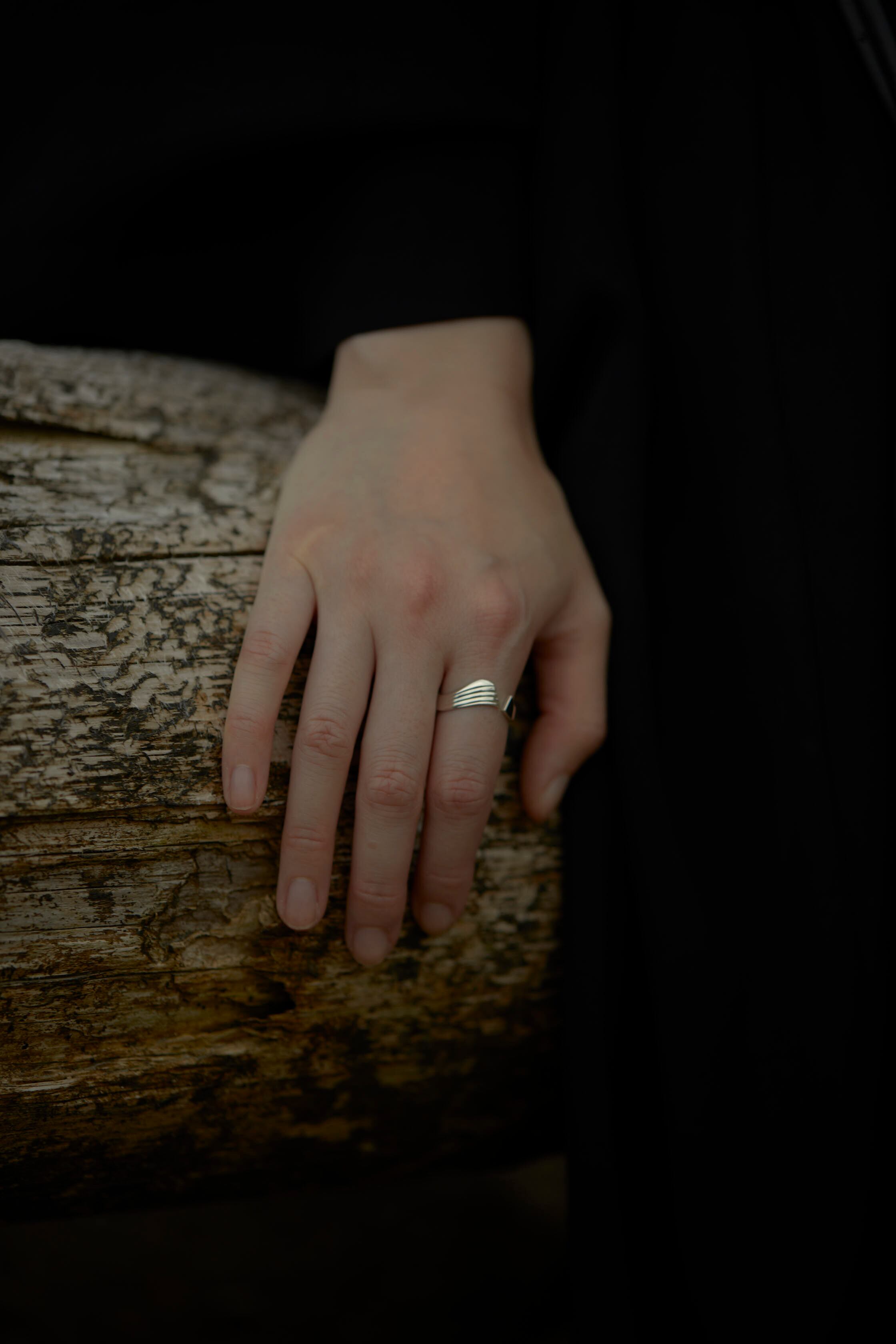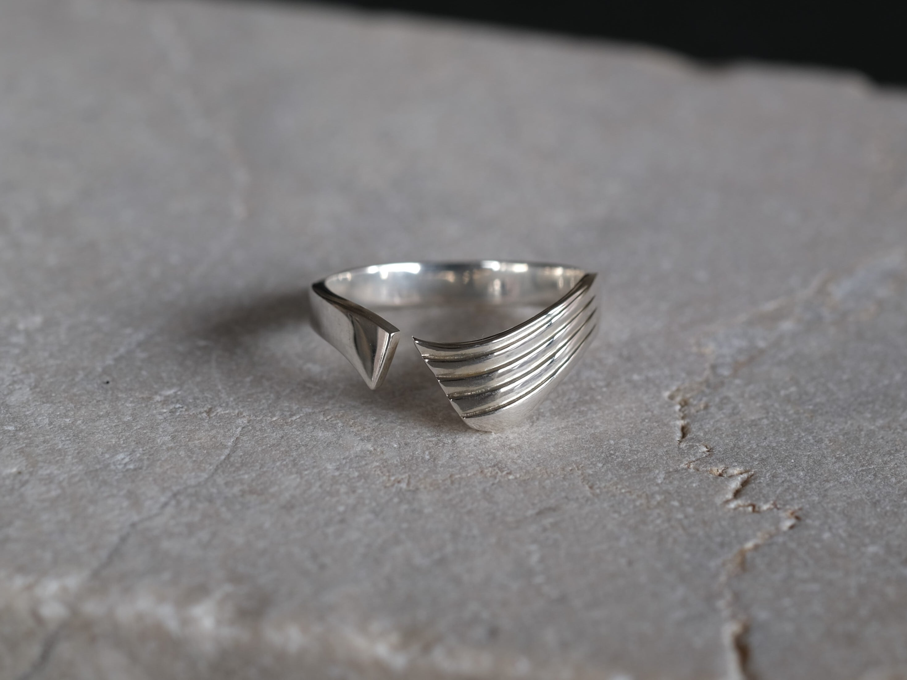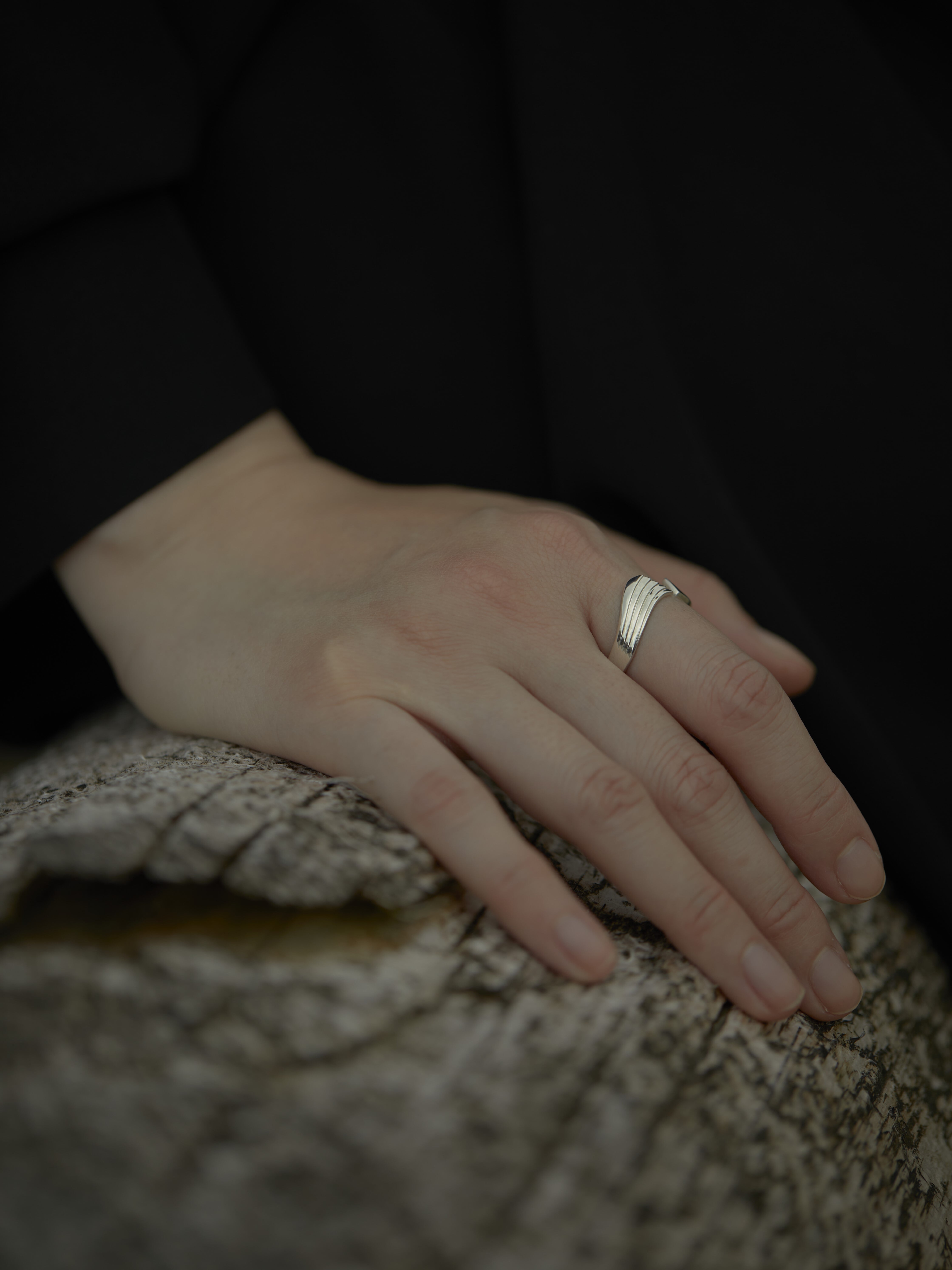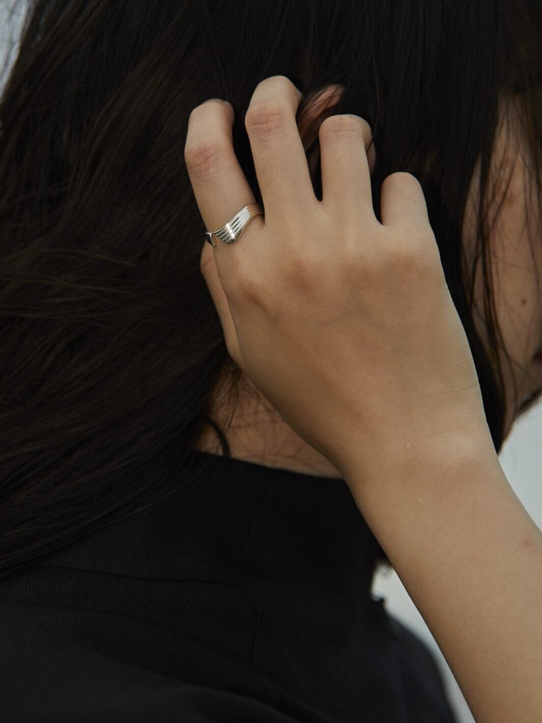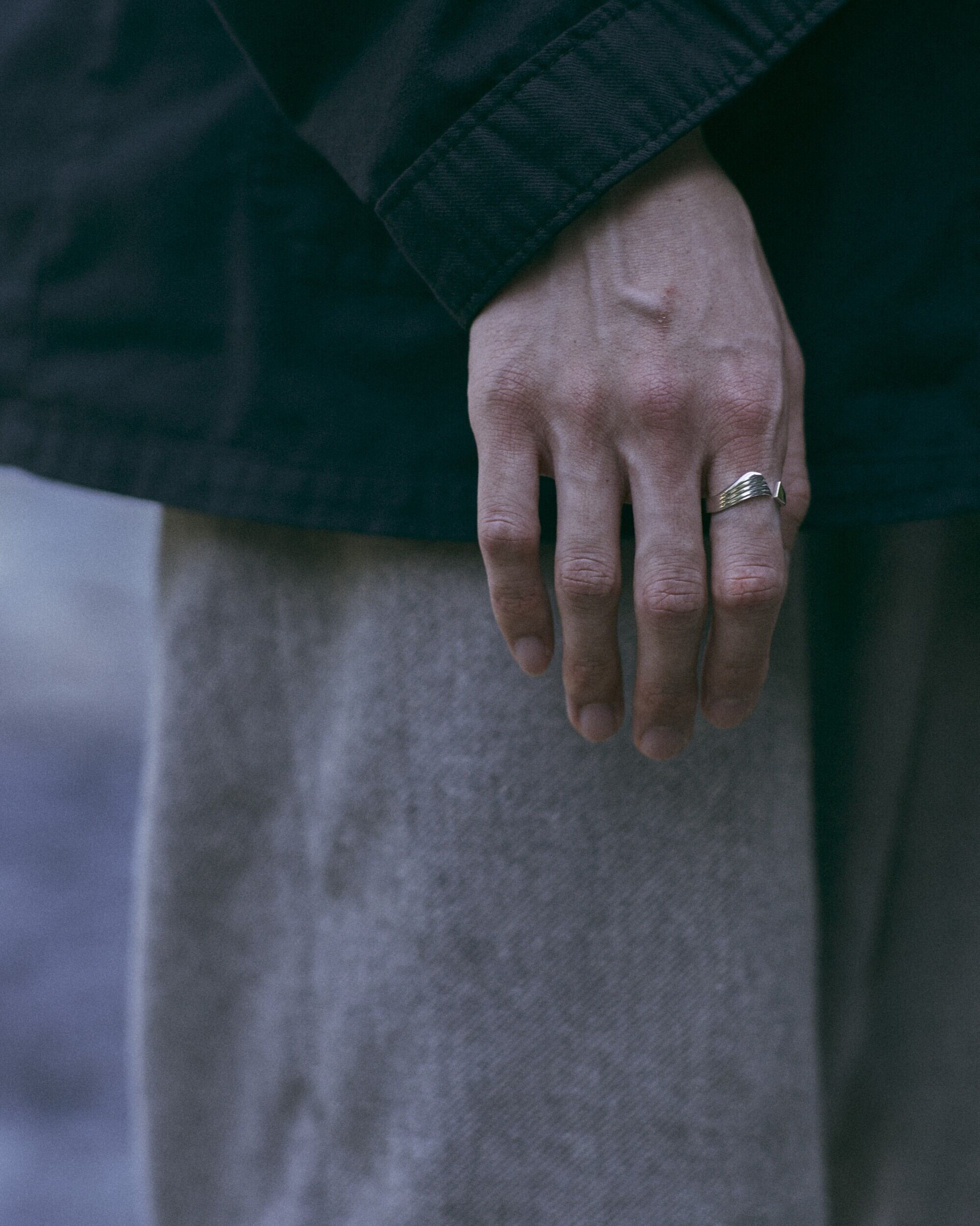 連なる板材や錨・オールを彷彿させるモチーフを落とし込んだシルバーリング。