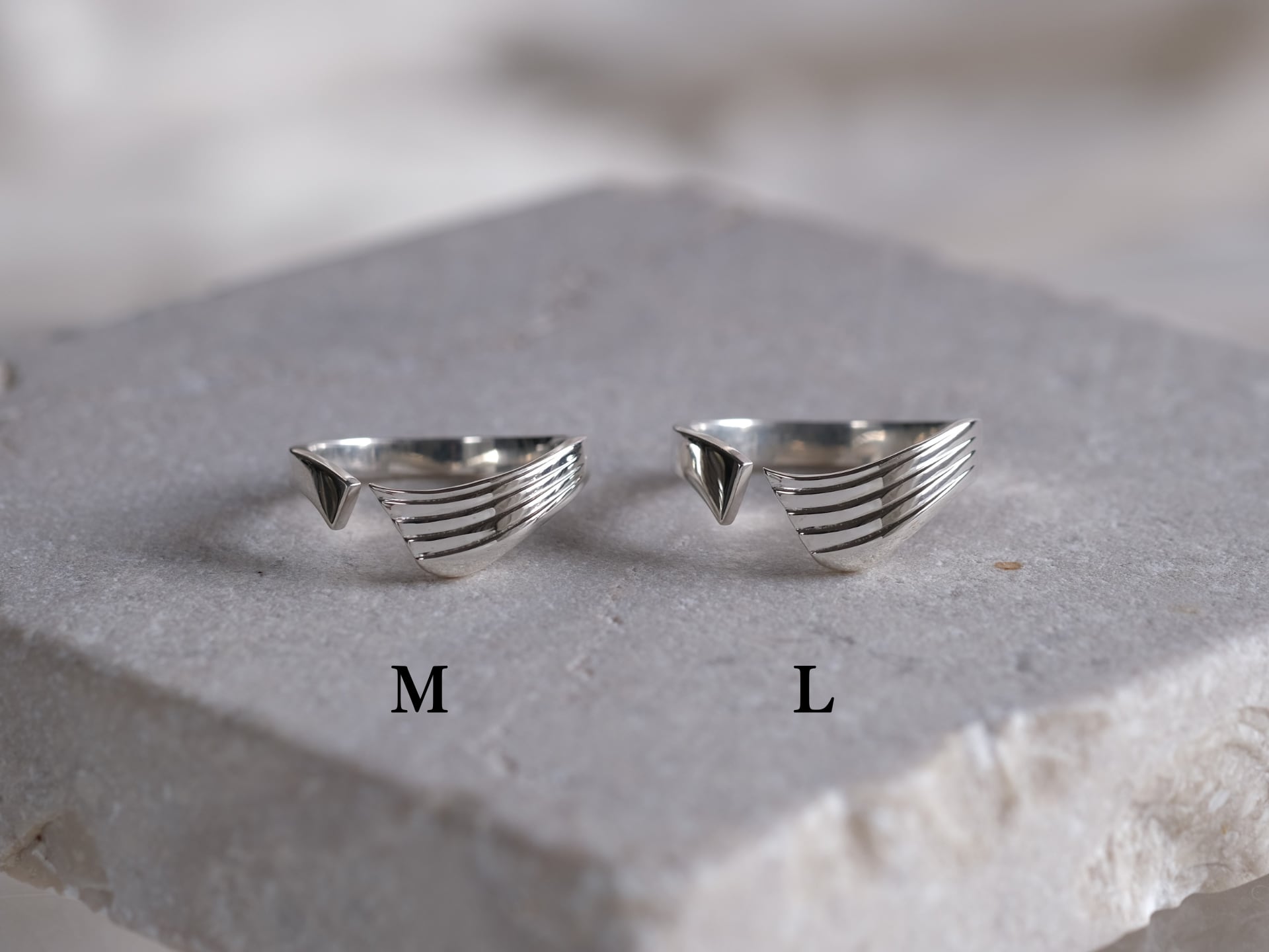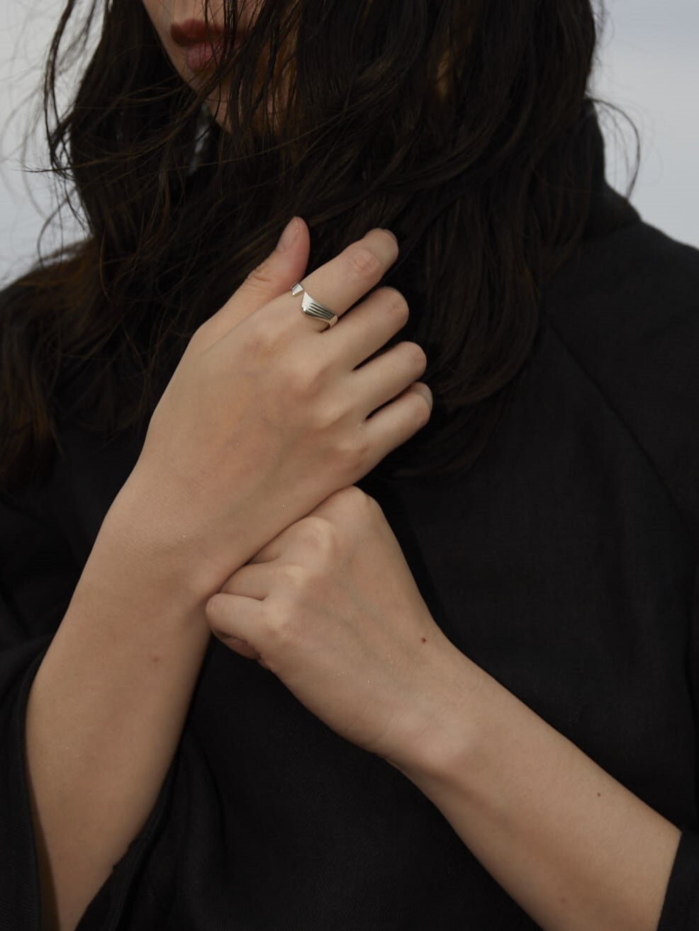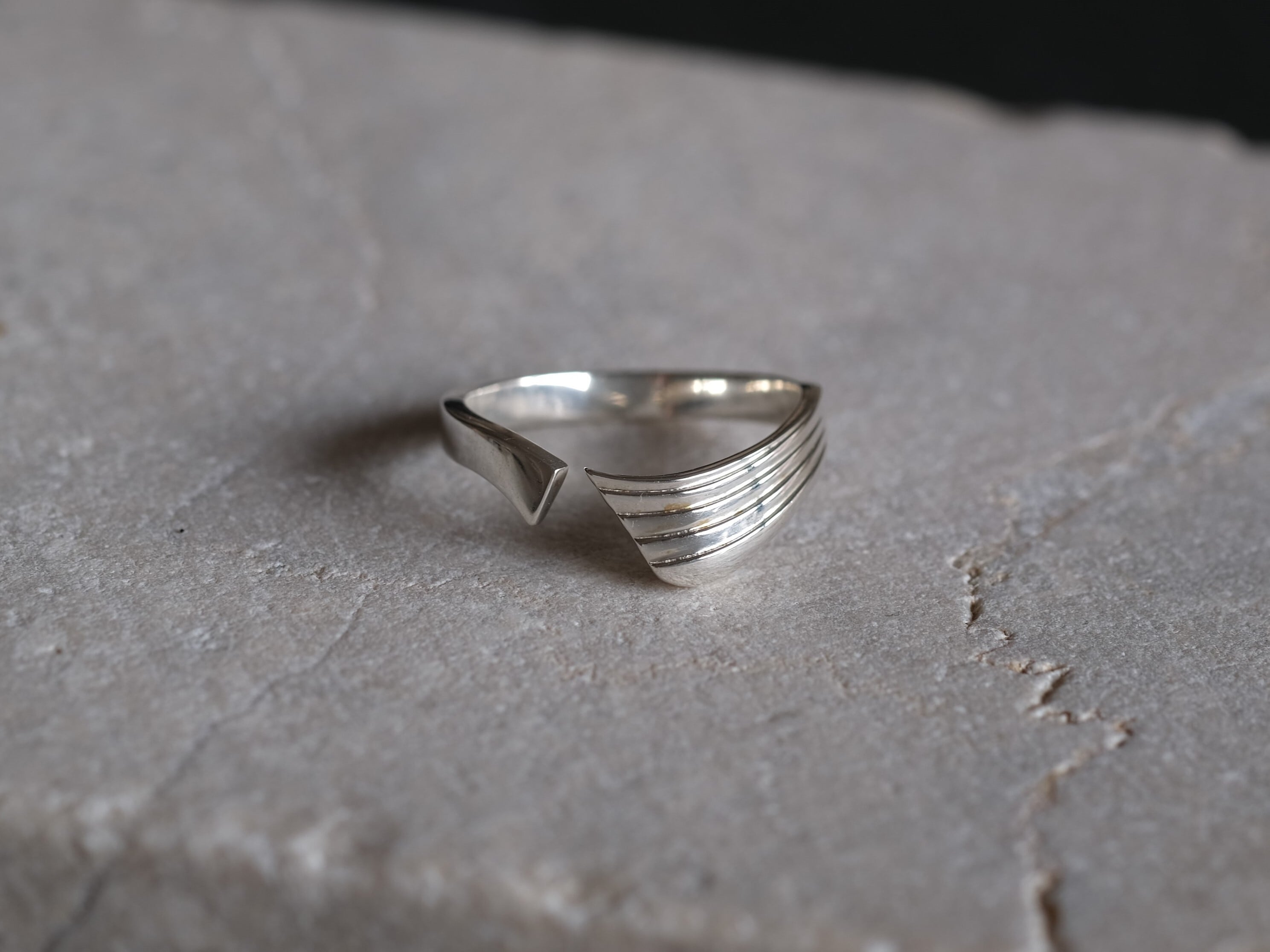 連なる板材や錨・オールを彷彿させるモチーフを落とし込んだシルバーリング。
