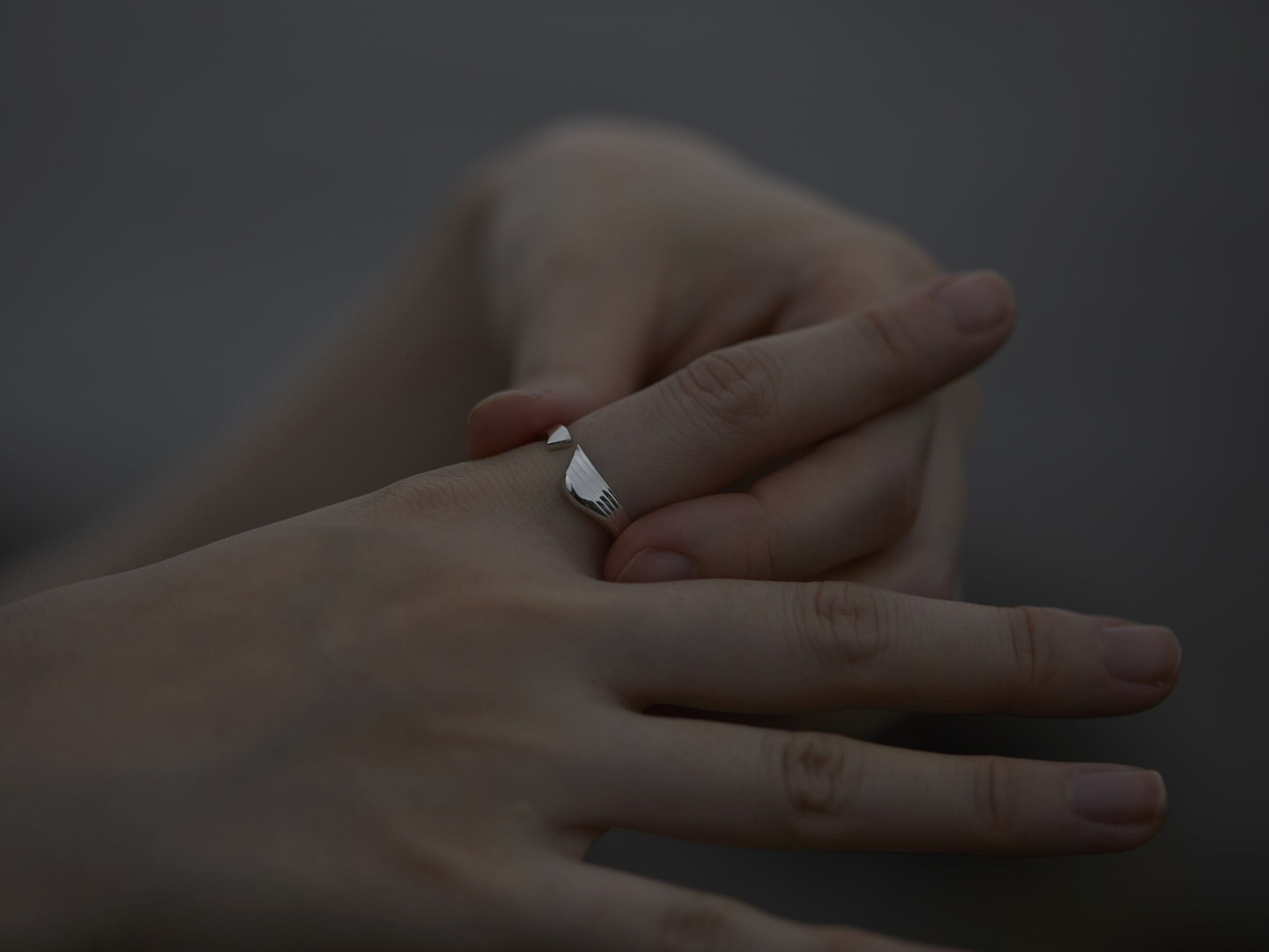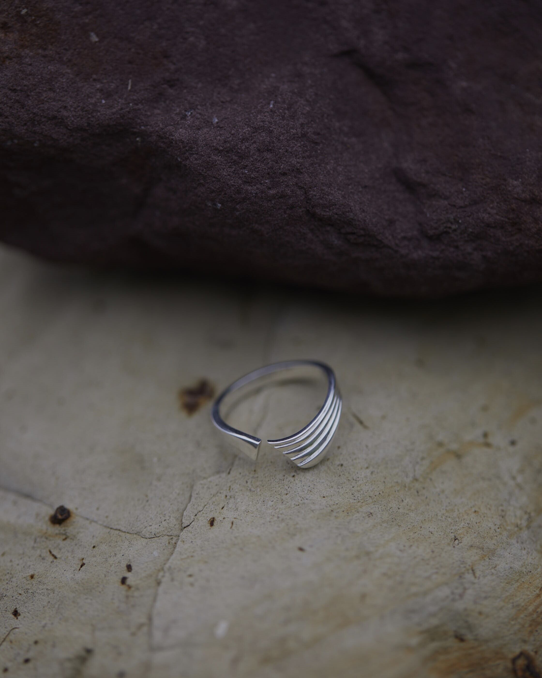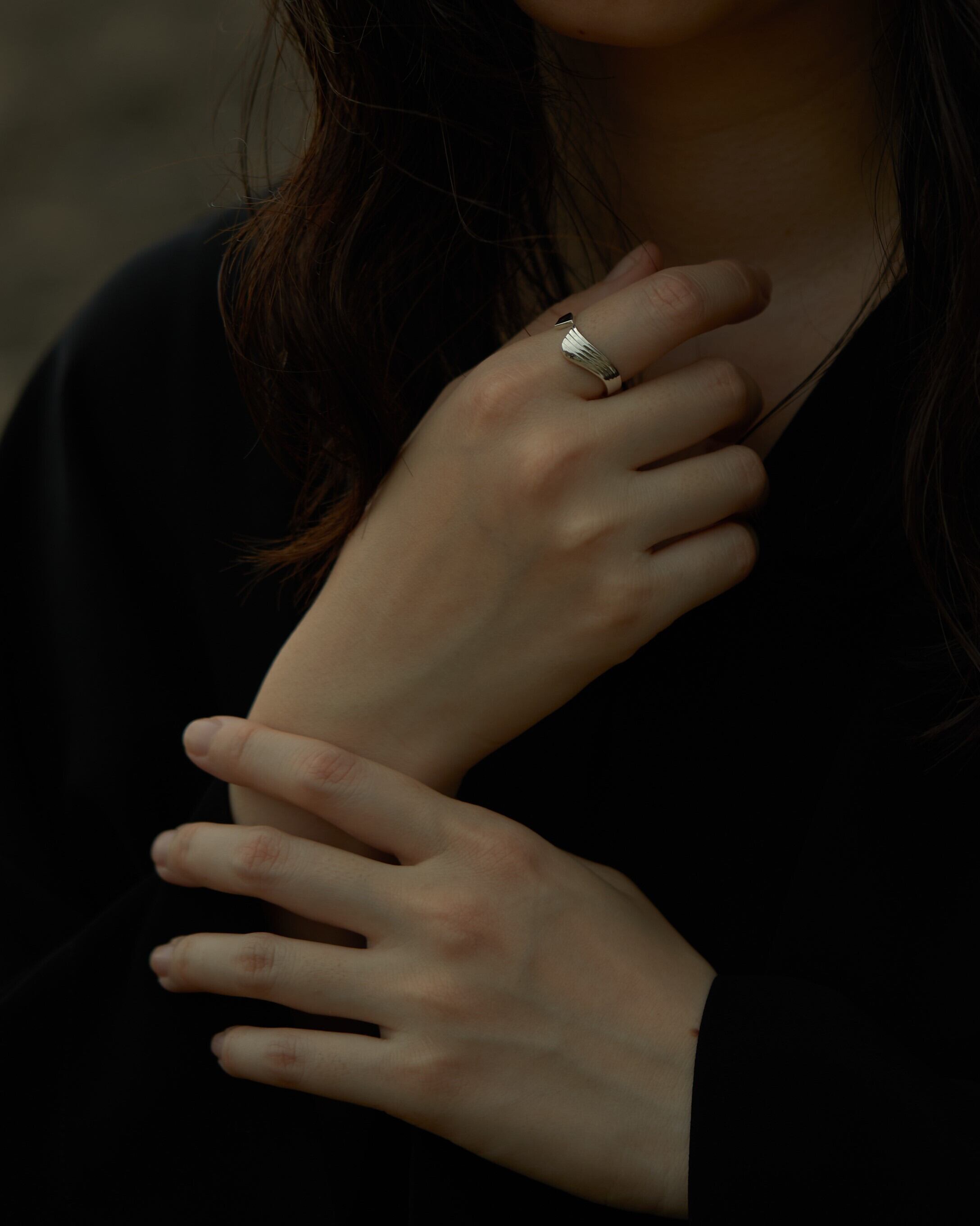 連なる板材や錨・オールを彷彿させるモチーフを落とし込んだシルバーリング。