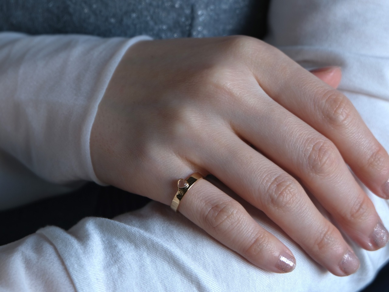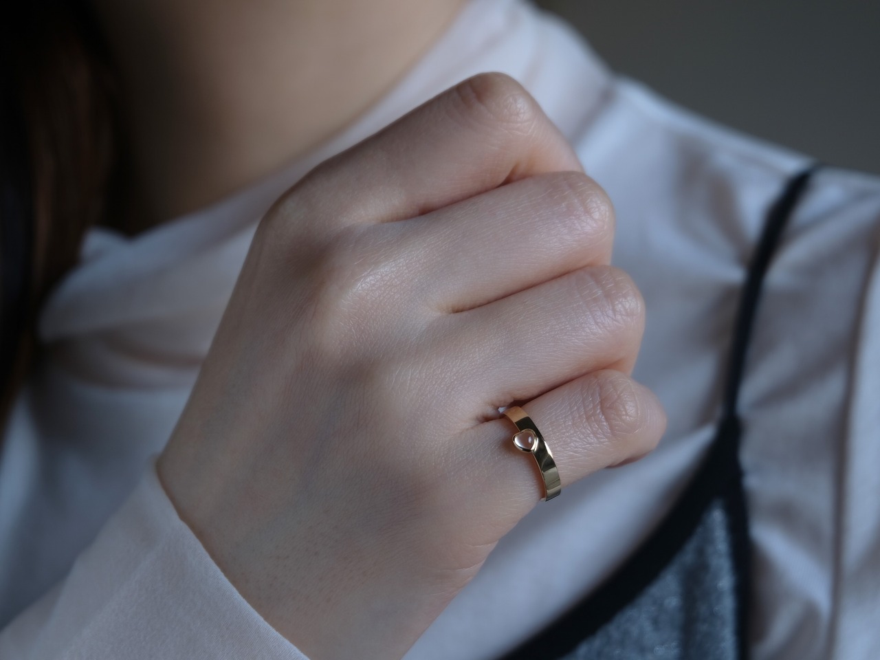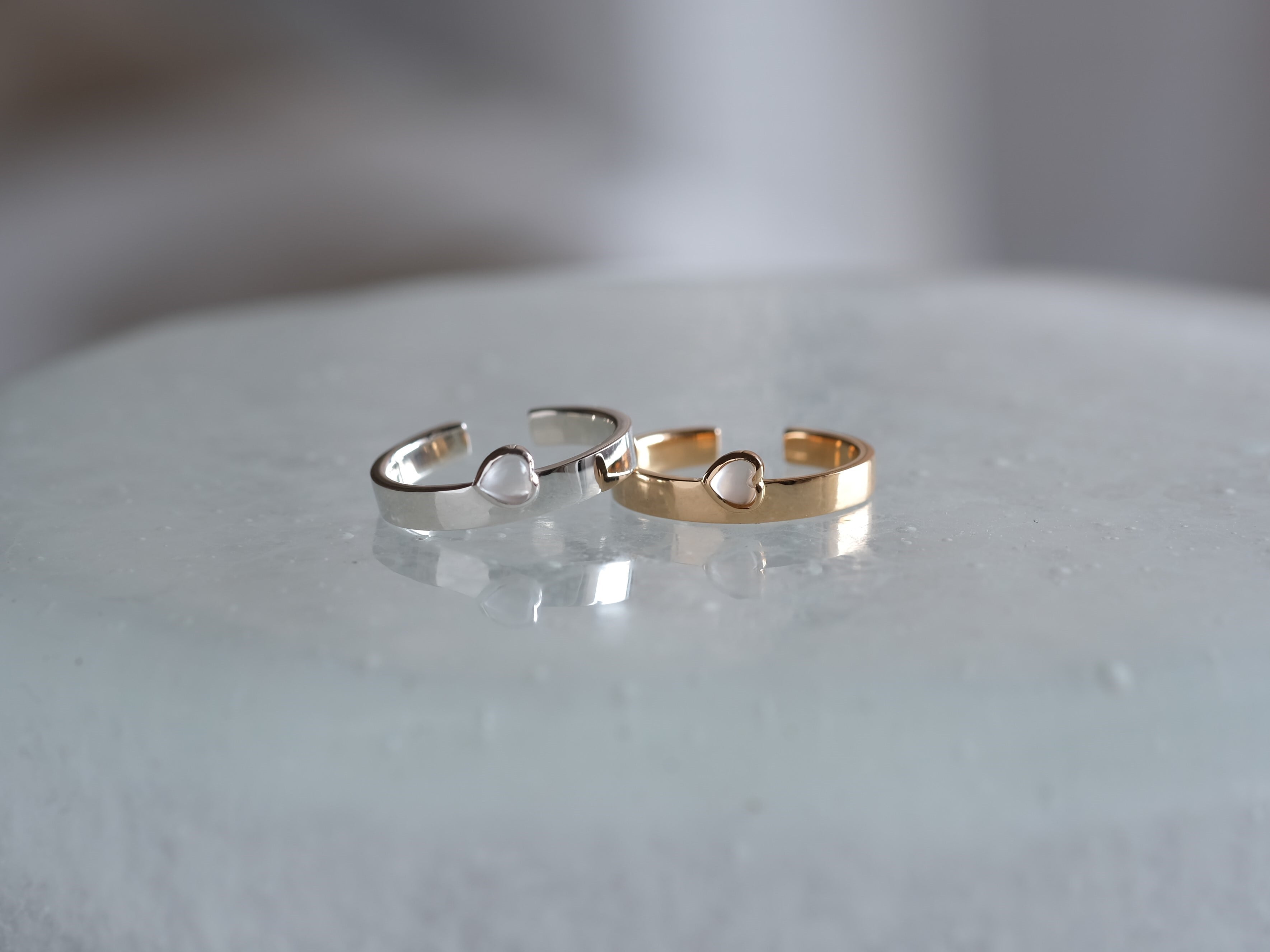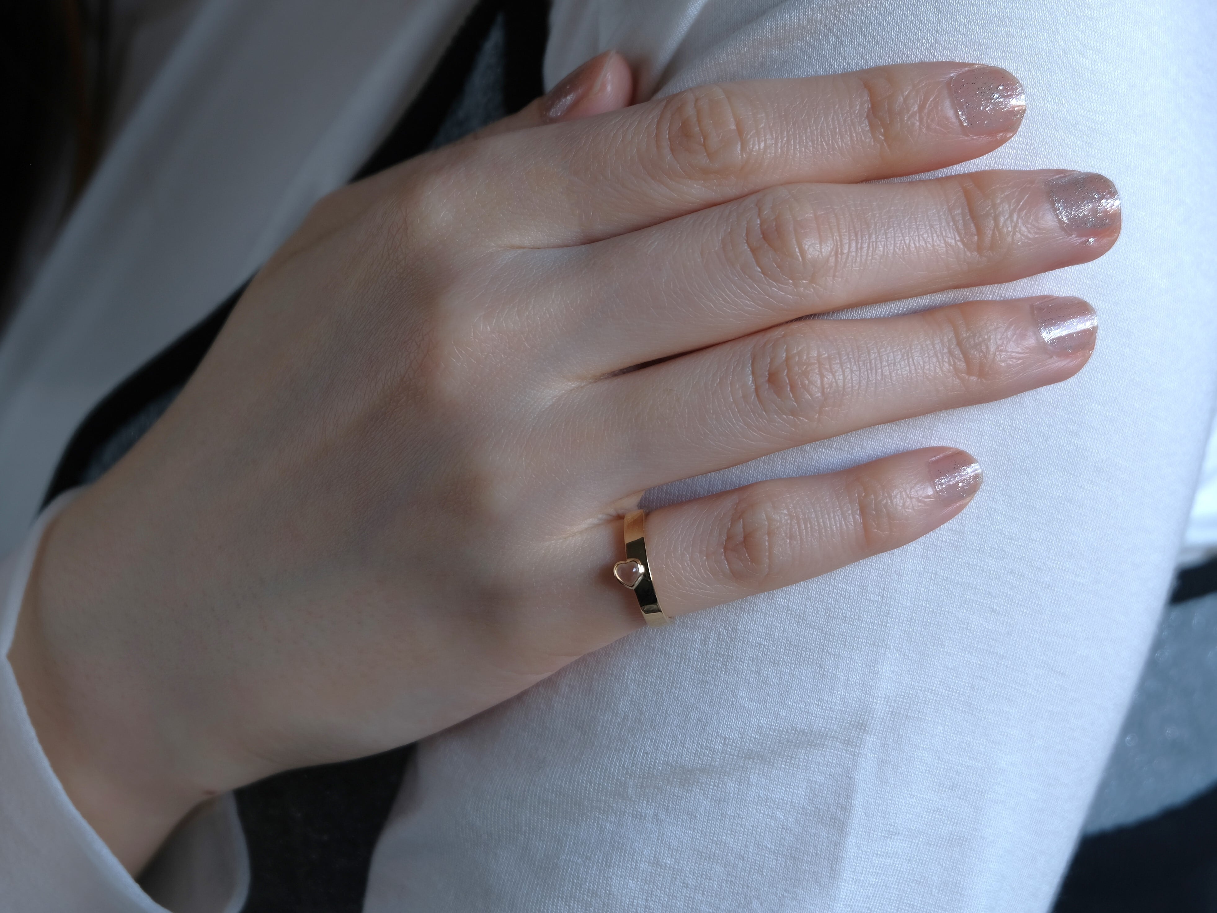 ハートを横向きにデザインして平打ちリングのポイントに。