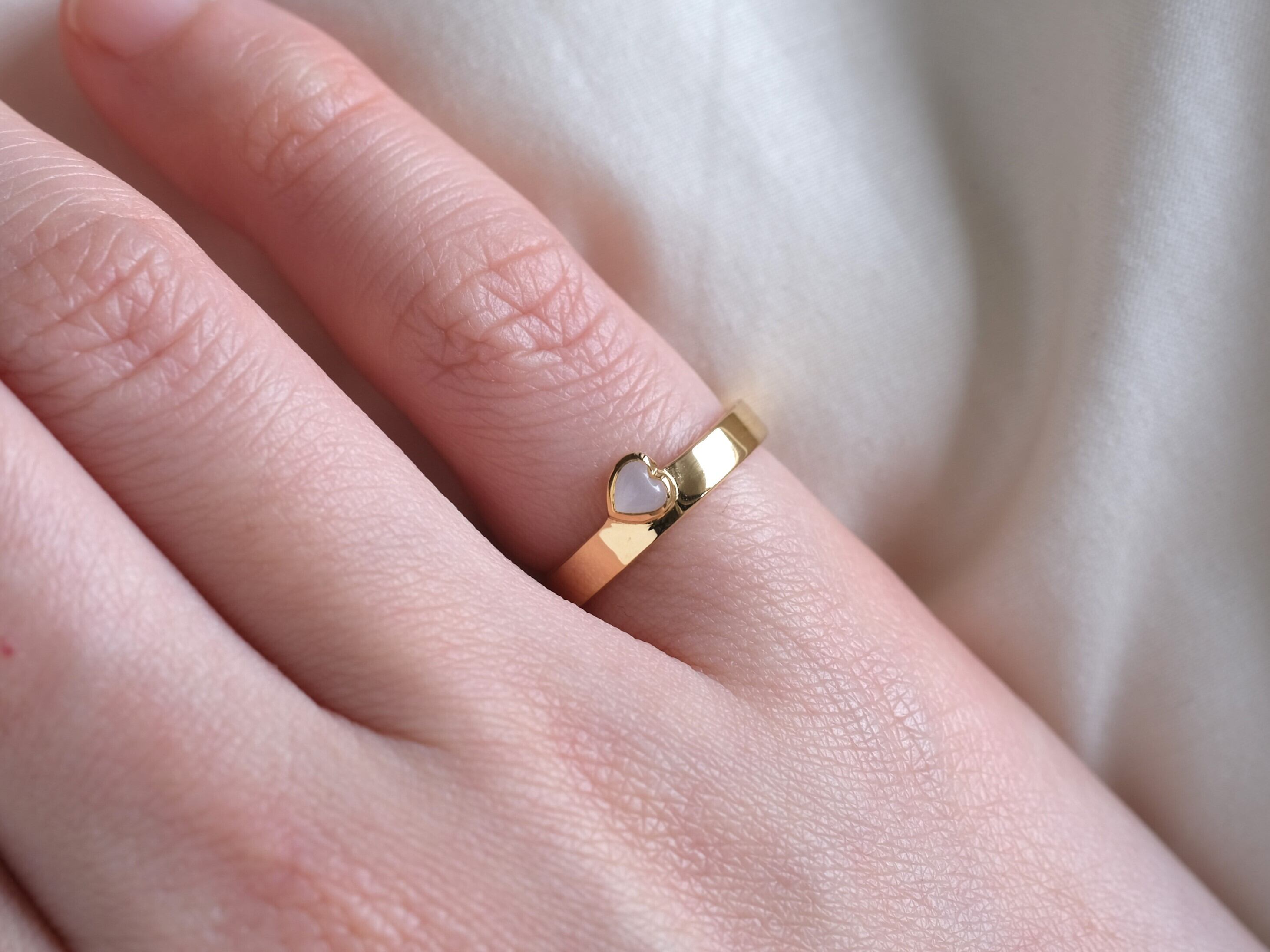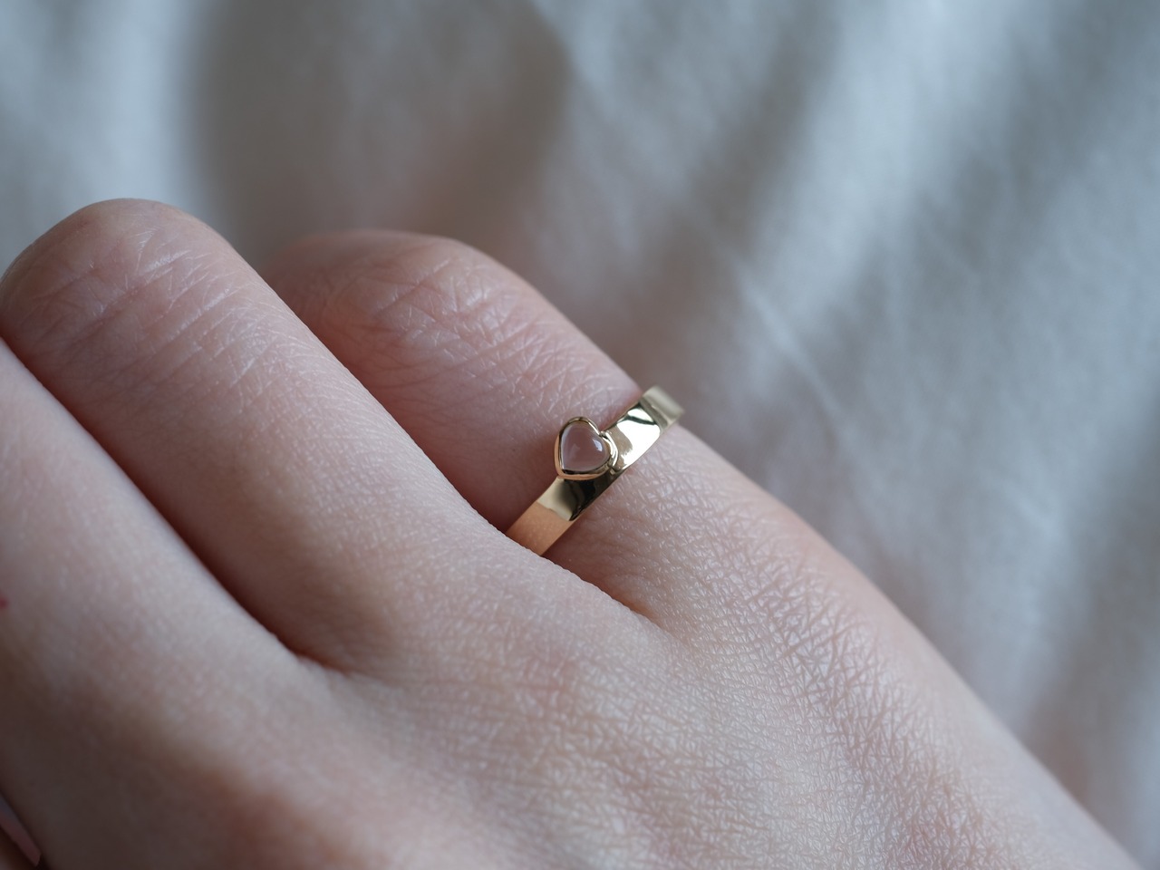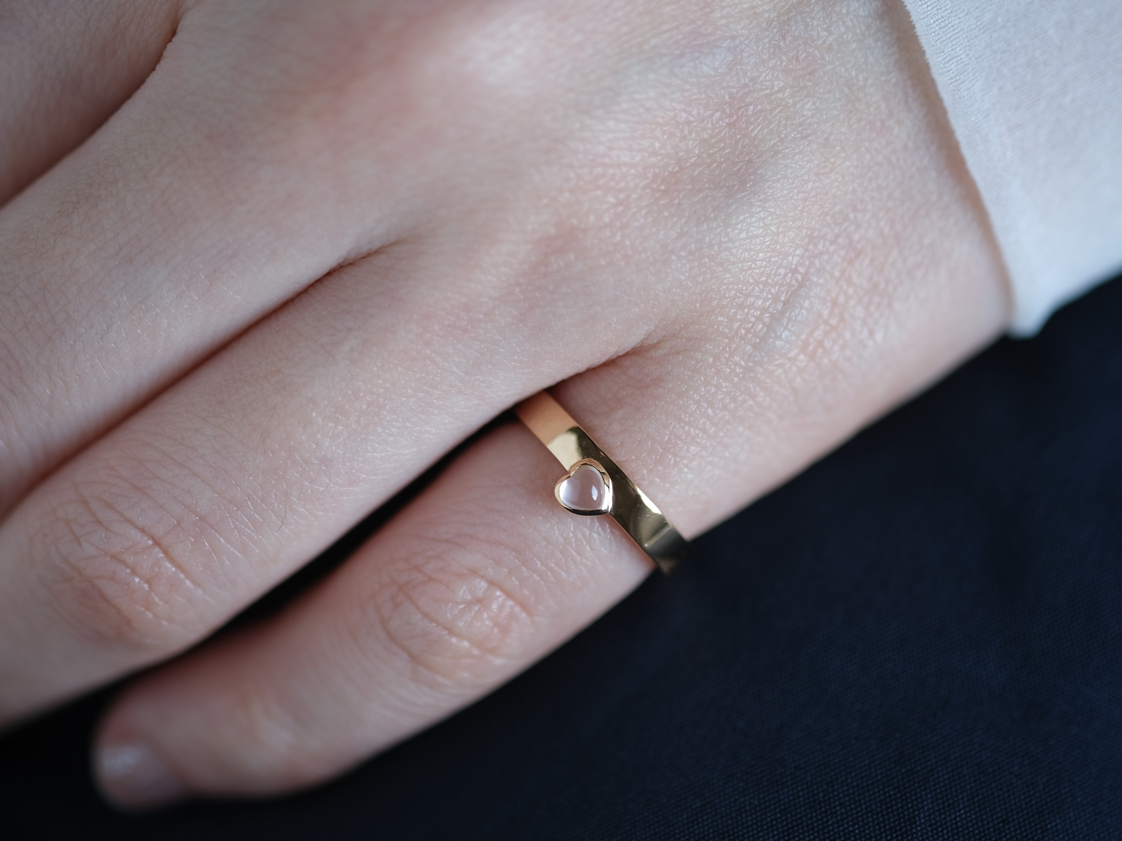 【SALE】lítið hjarta ring ゴールドカラー 小さなハート ピンキーリング 天然石ムーンストーン シルバー ゴールド K18GP