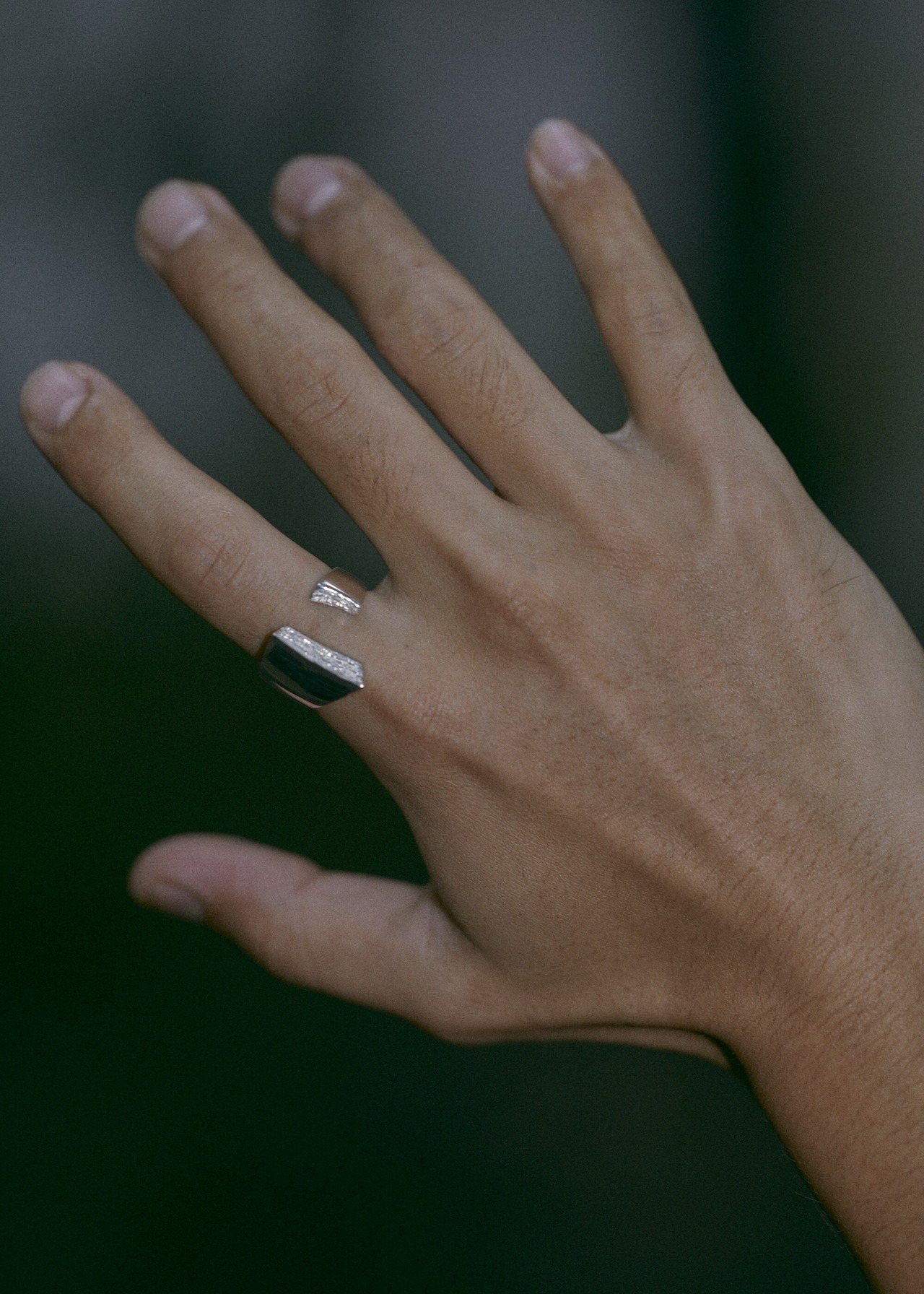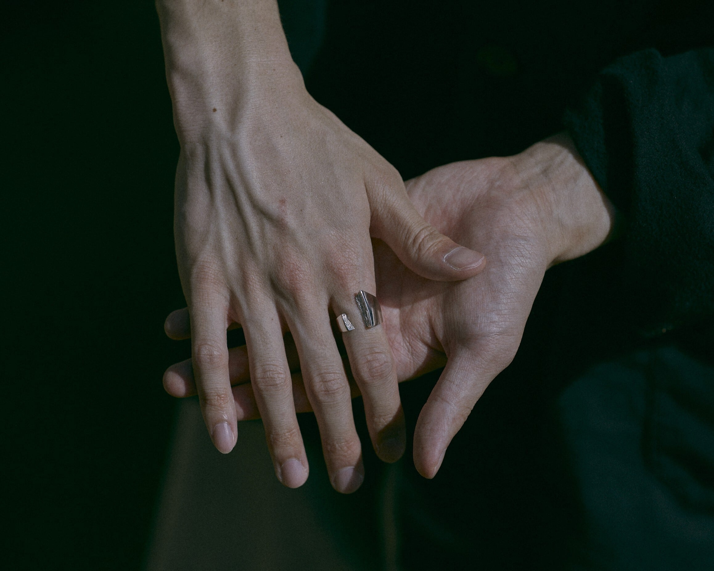 中央の部分は縦線の流れるようなテクスチャー加工により光が当たると反射して煌めきます。