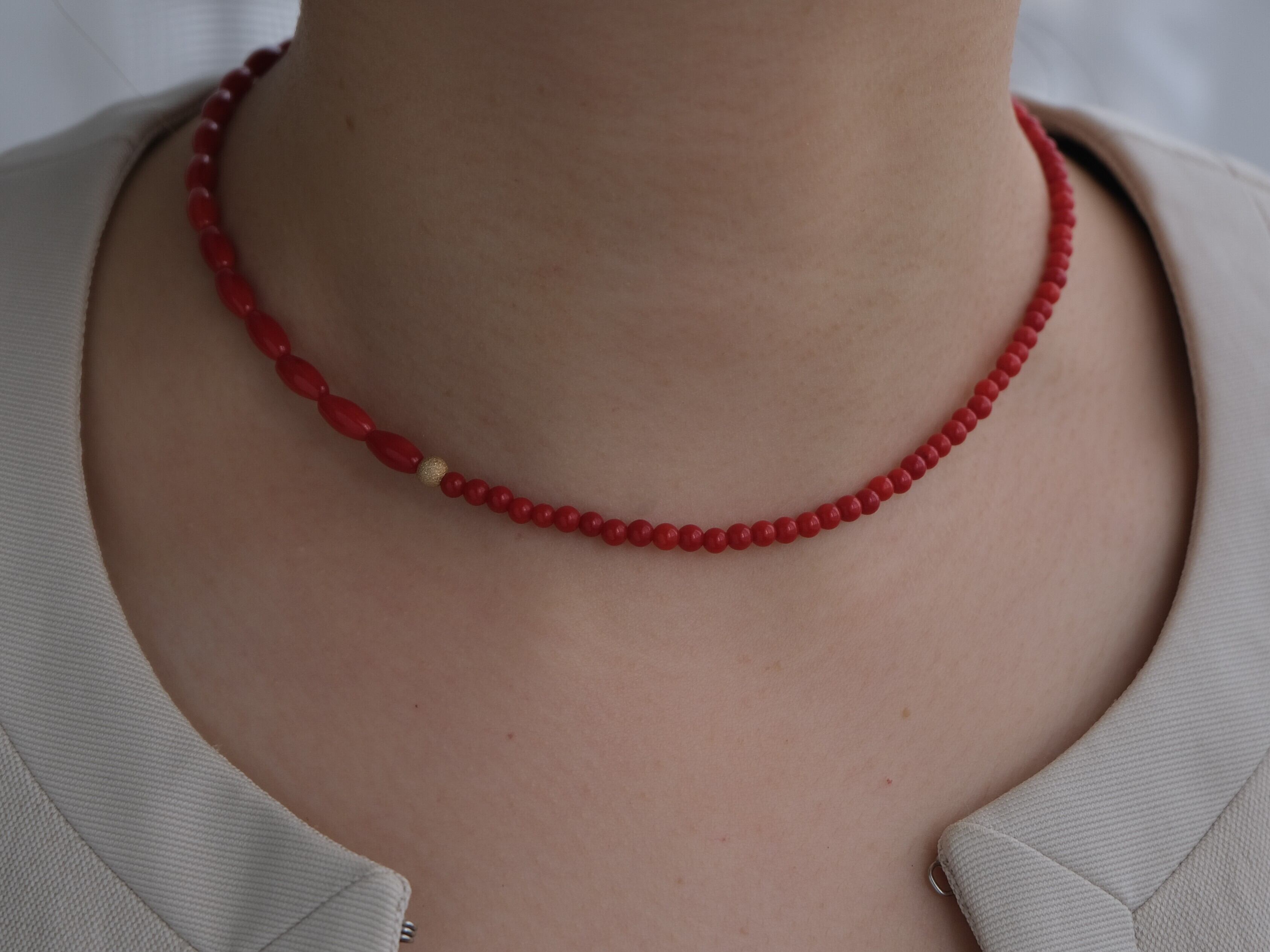 Red coral necklace:赤サンゴ ビーズネックレス ギフト 誕生石 プレゼント 珊瑚