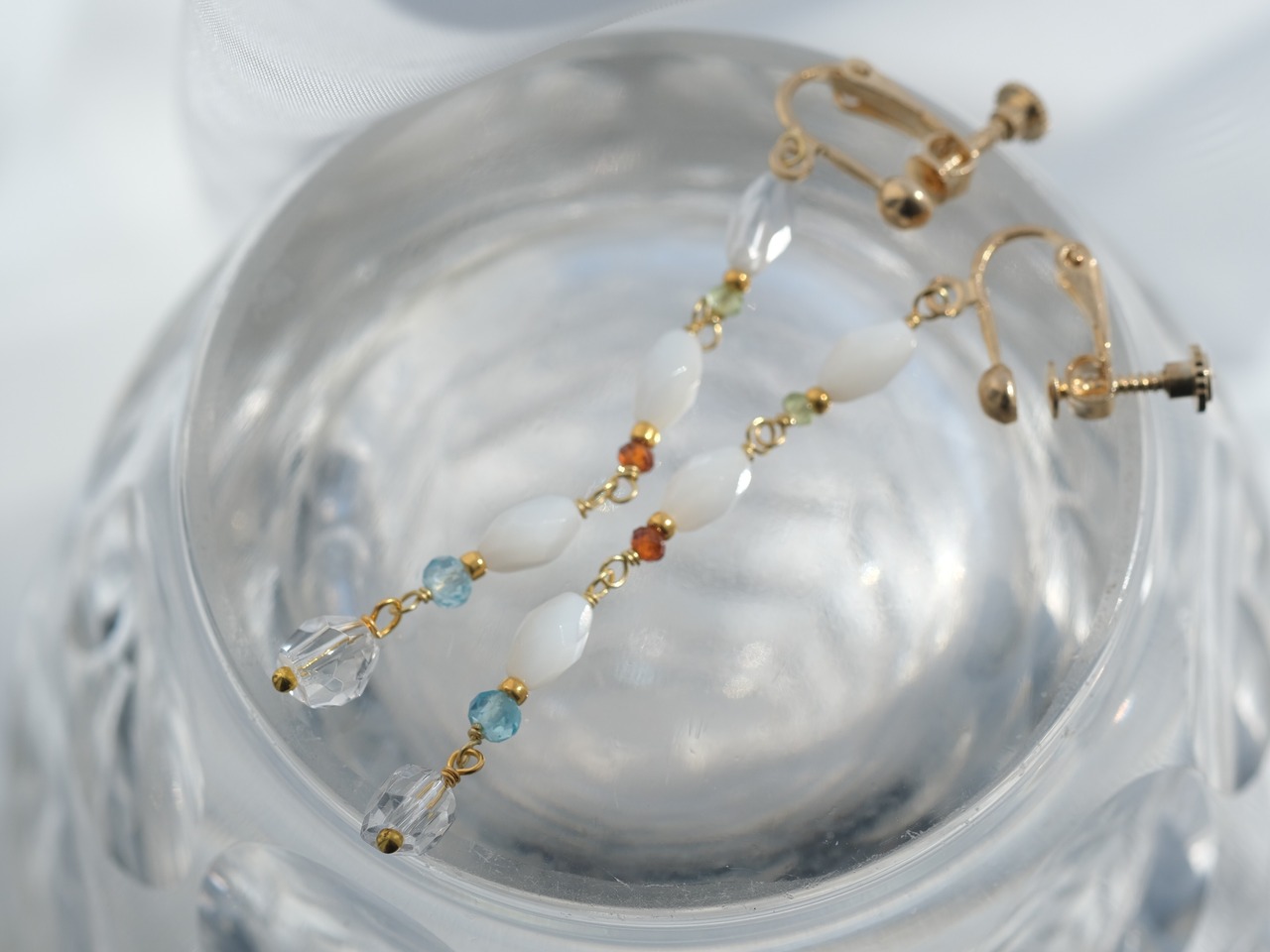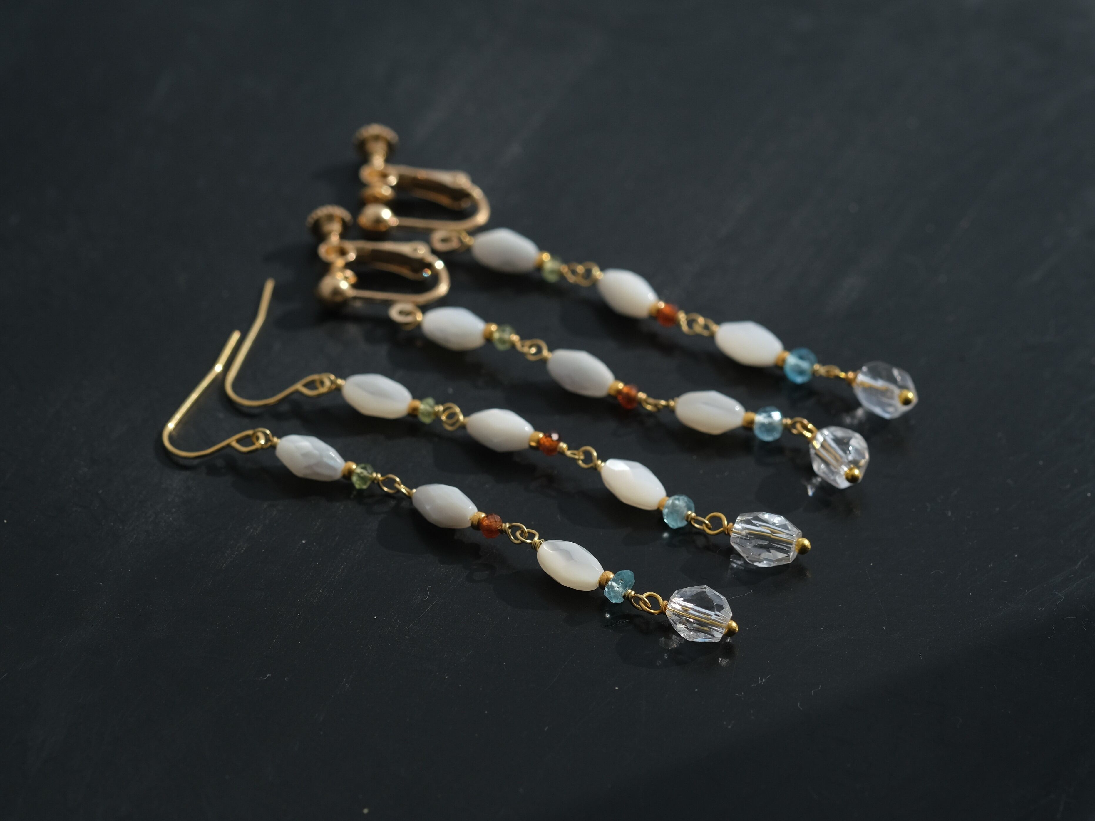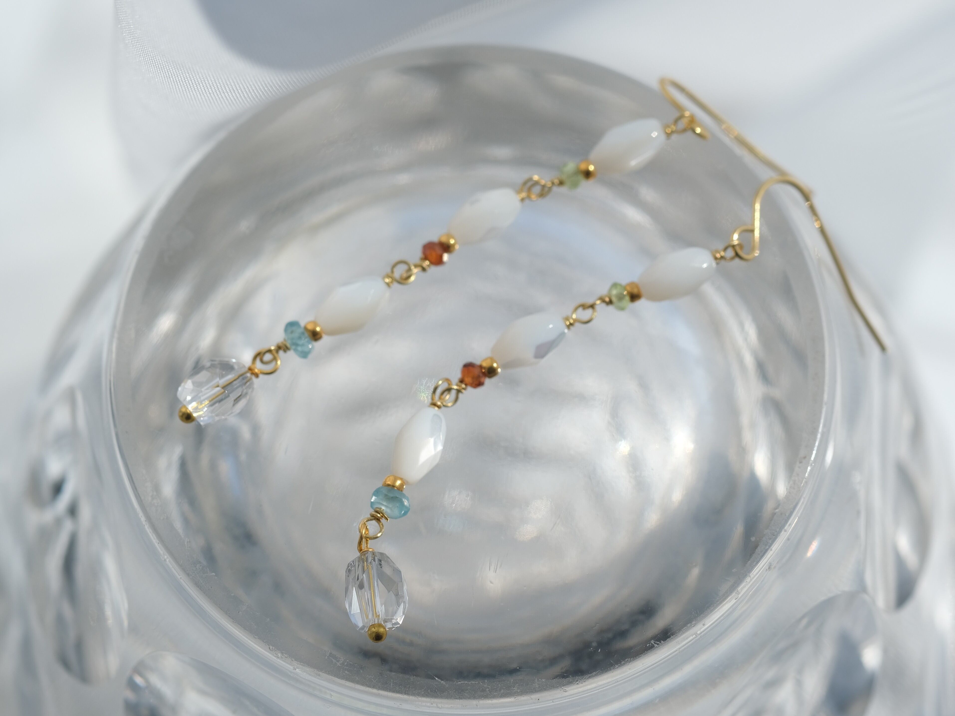 mother of pearl & apatite earring:天然石 ロングピアス アパタイト ペリドット ヘソナイト クオーツ ロングイヤリング 贈り物 誕生石 プレゼント