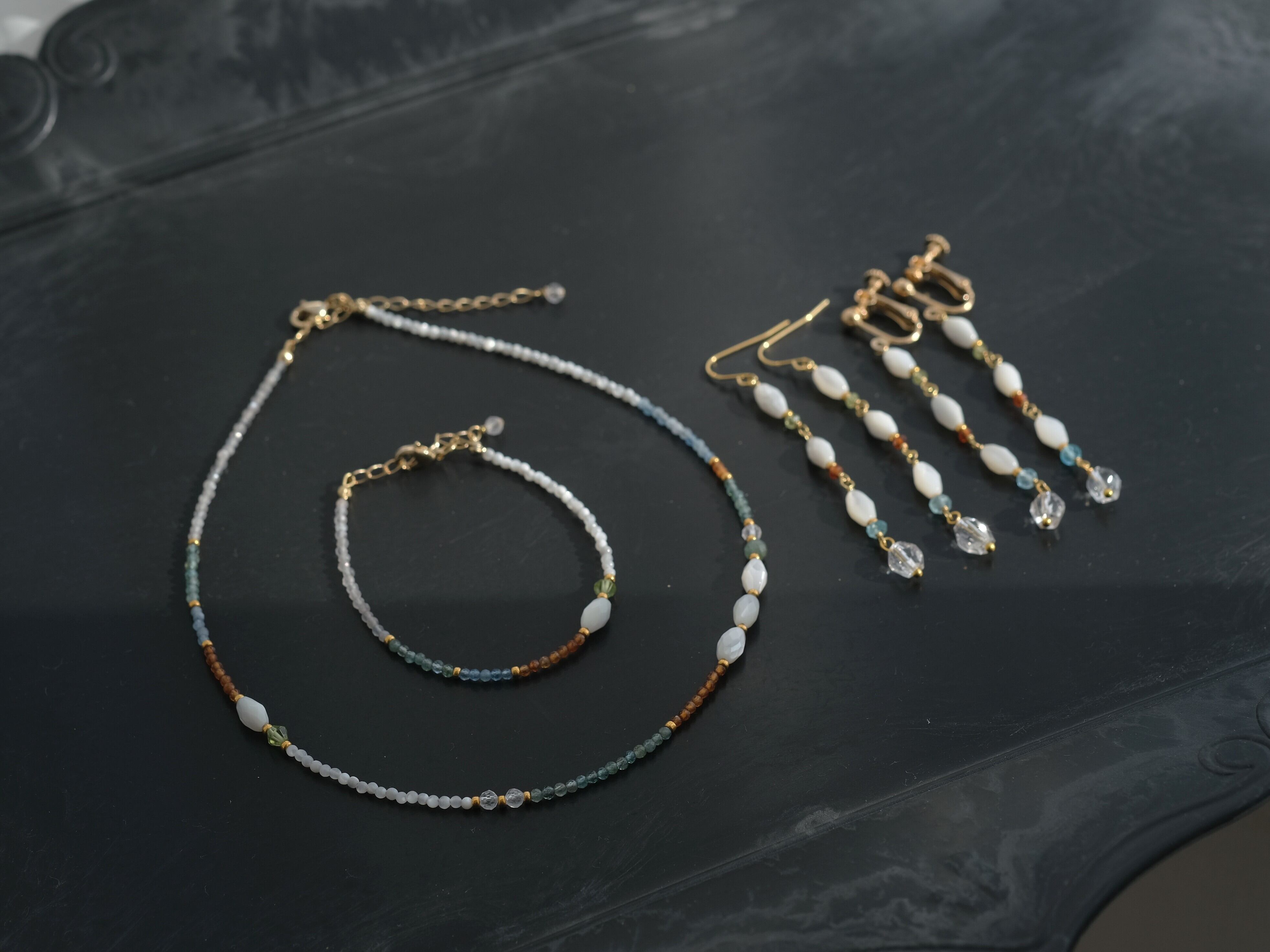 ネックレス・ブレスレット・ピアス(イヤリング)とご用意ございます。
