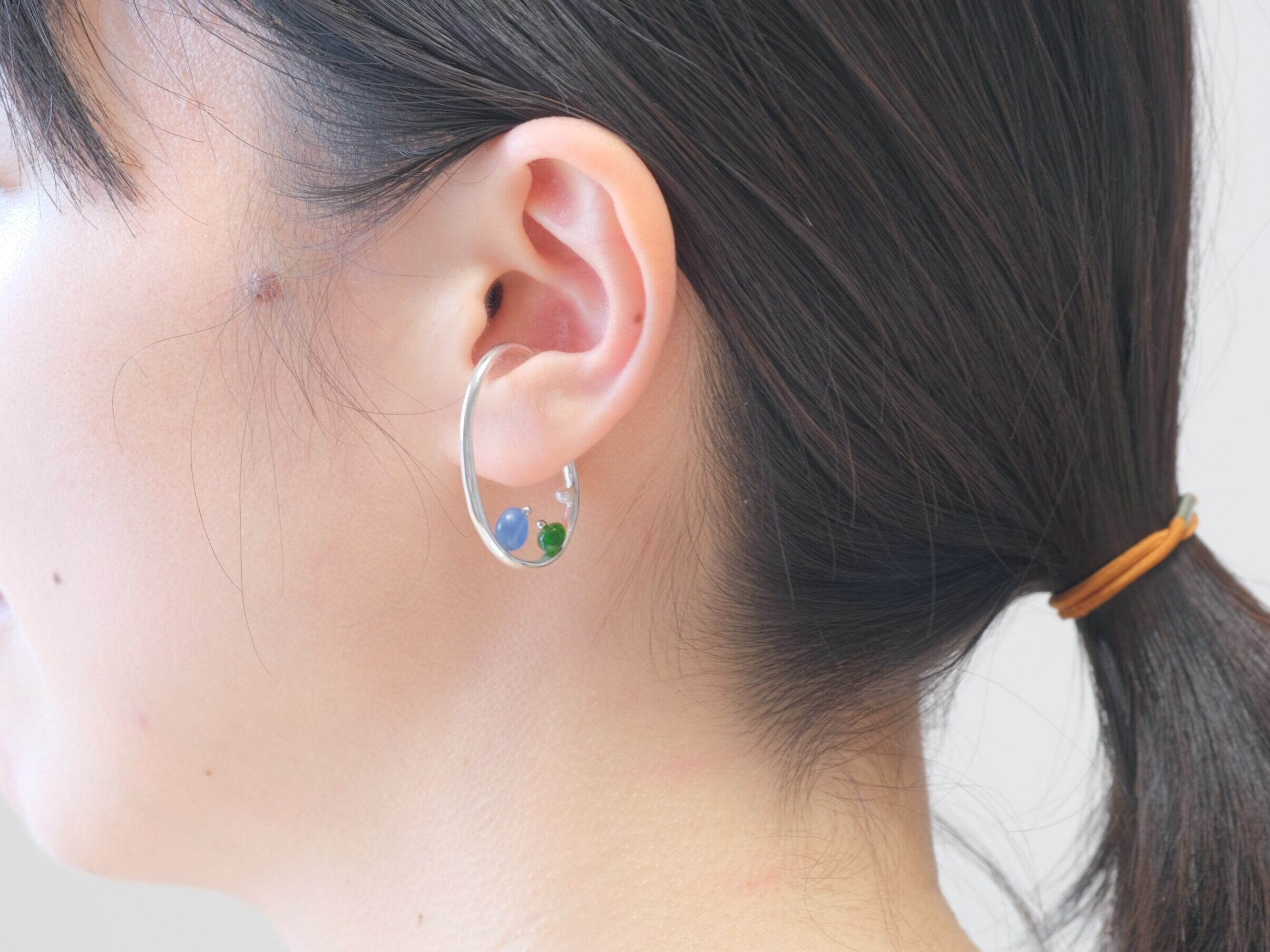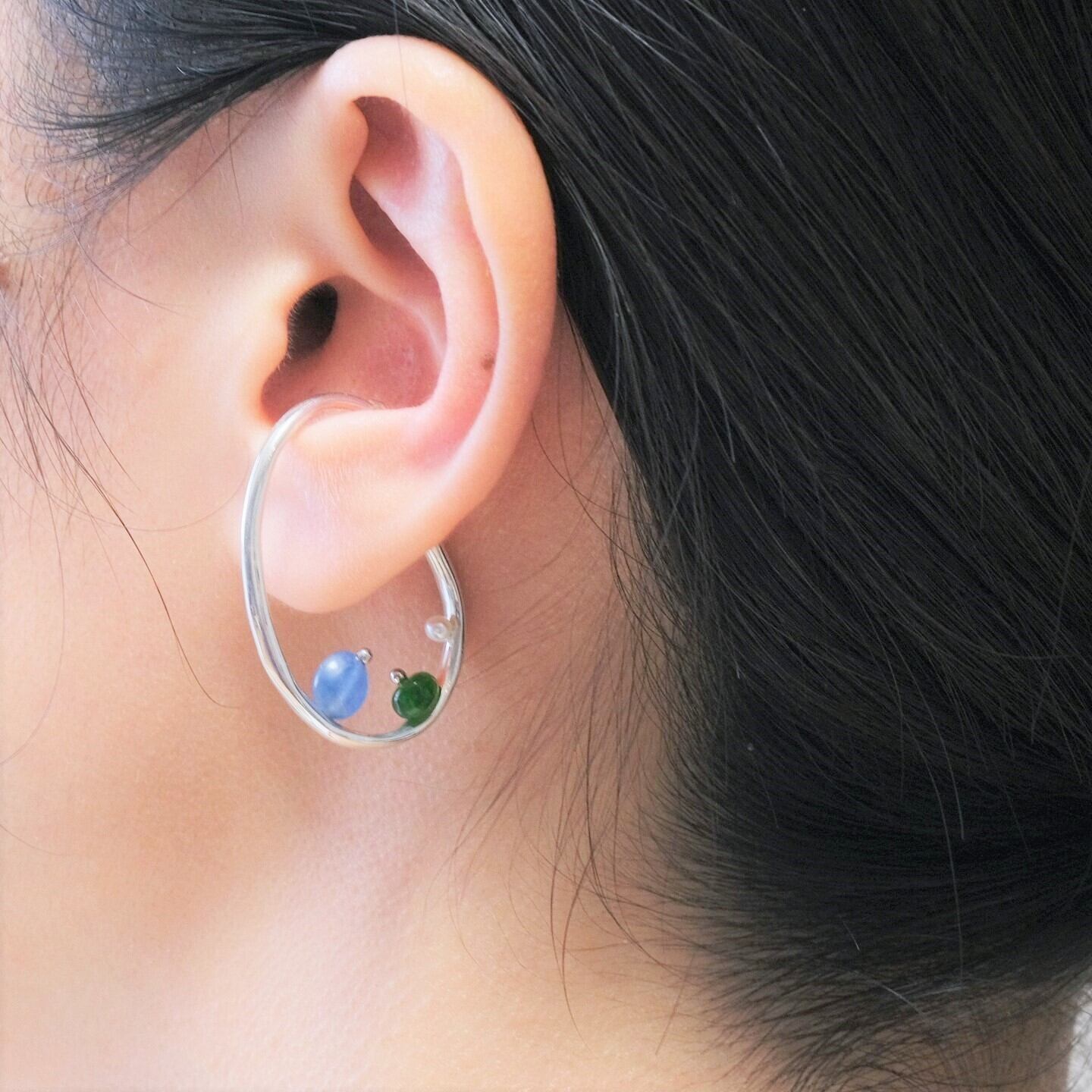 litrík ear cuff:カイヤナイト、クロムダイオプサイド、淡水パール