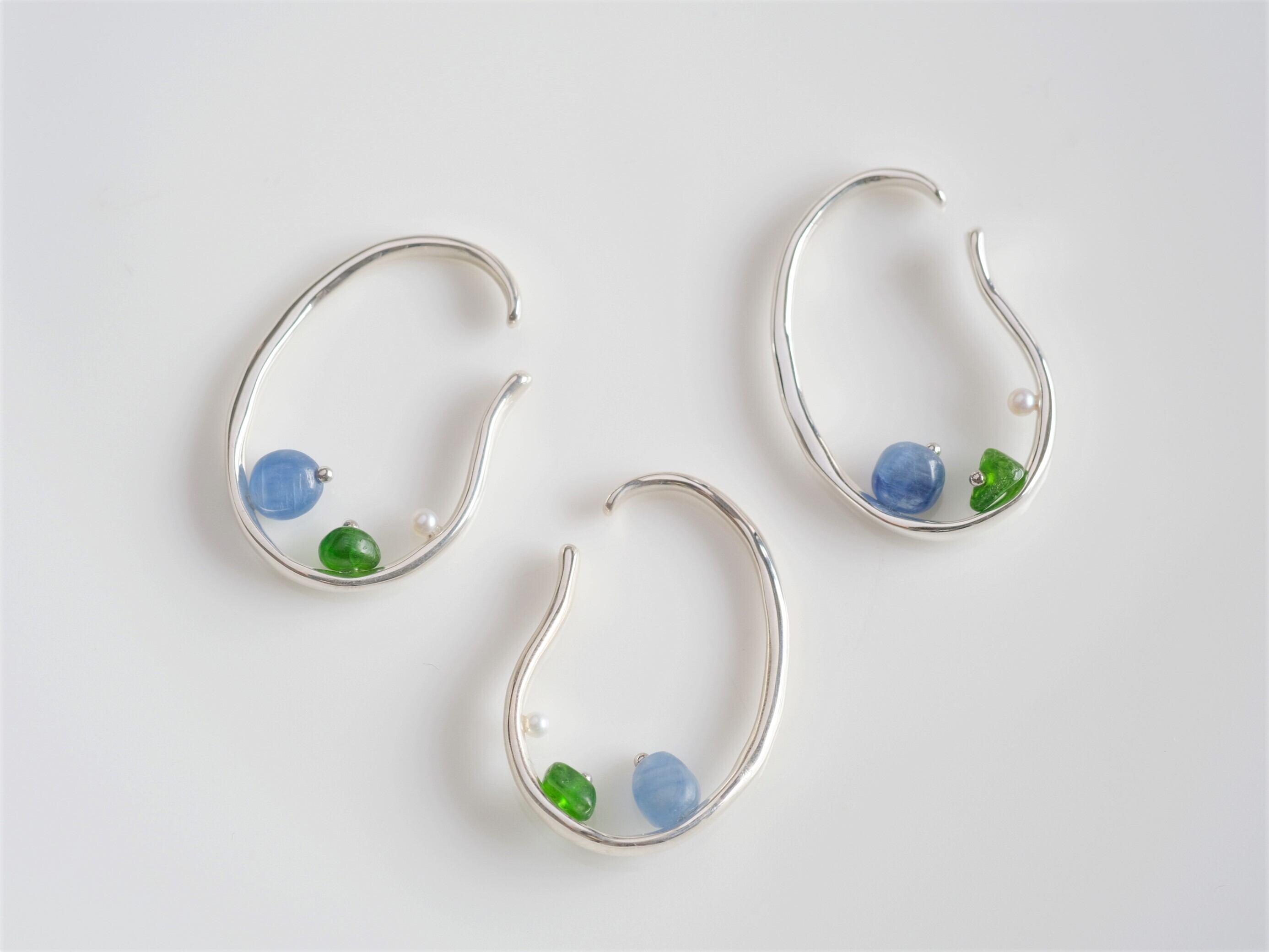 天然石シルバーイヤーカフ litrík ear cuff:カイヤナイト、クロムダイオプサイド、パール