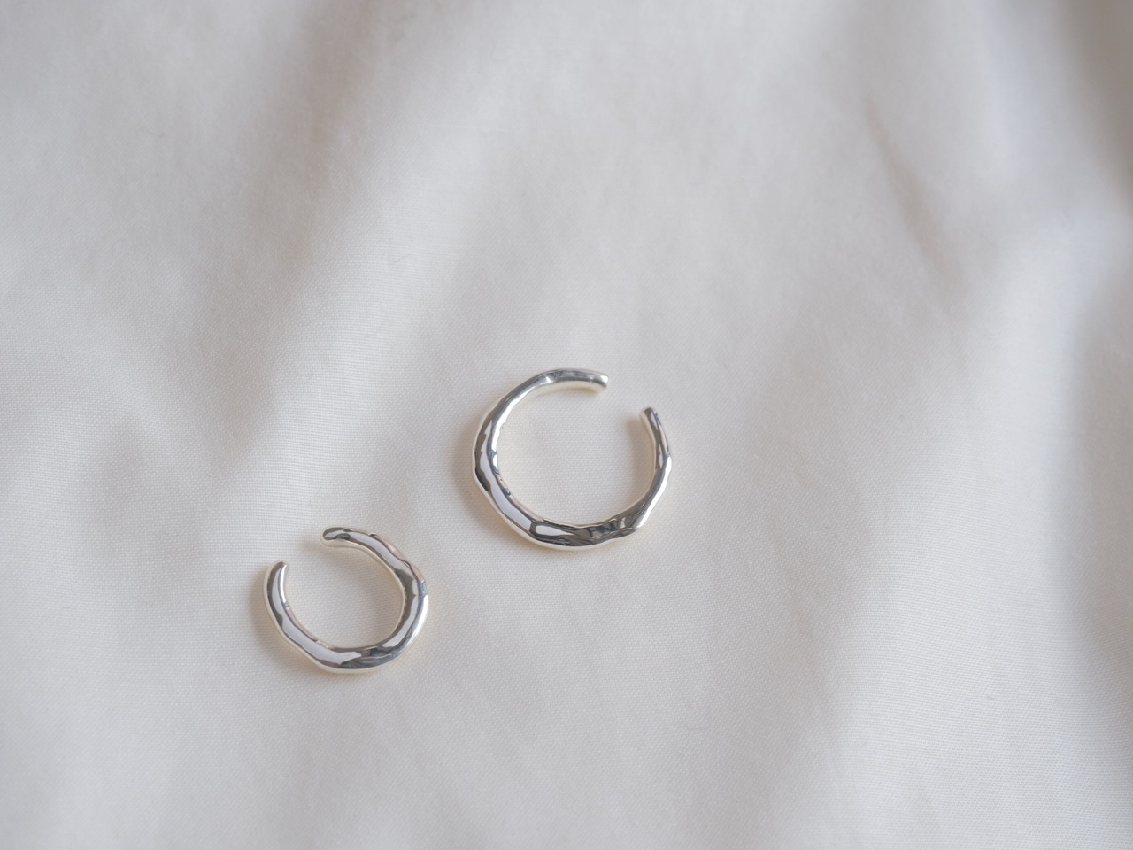 シンプルながらもちょっともこもことした歪つなテクスチャー感があり遊び心のあるイヤカフ。