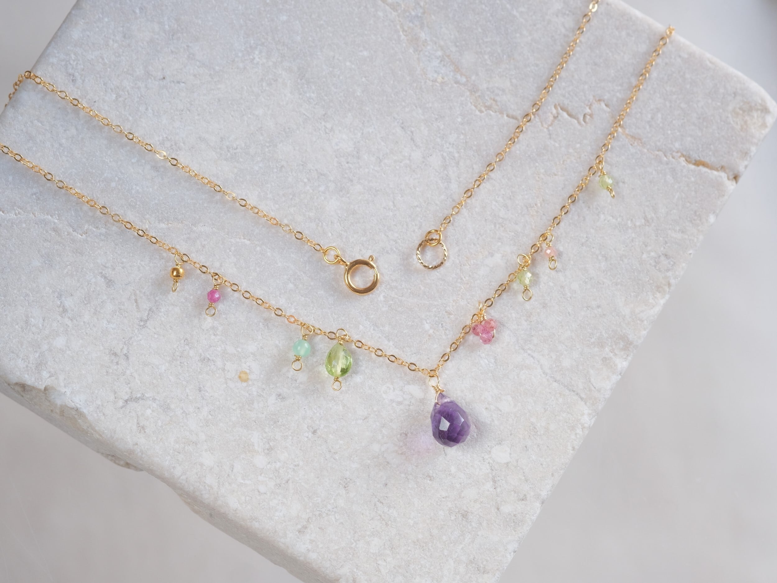 bloomig necklace:アメジスト×ペリドット×ルビー ネックレス 14kgfチェーン