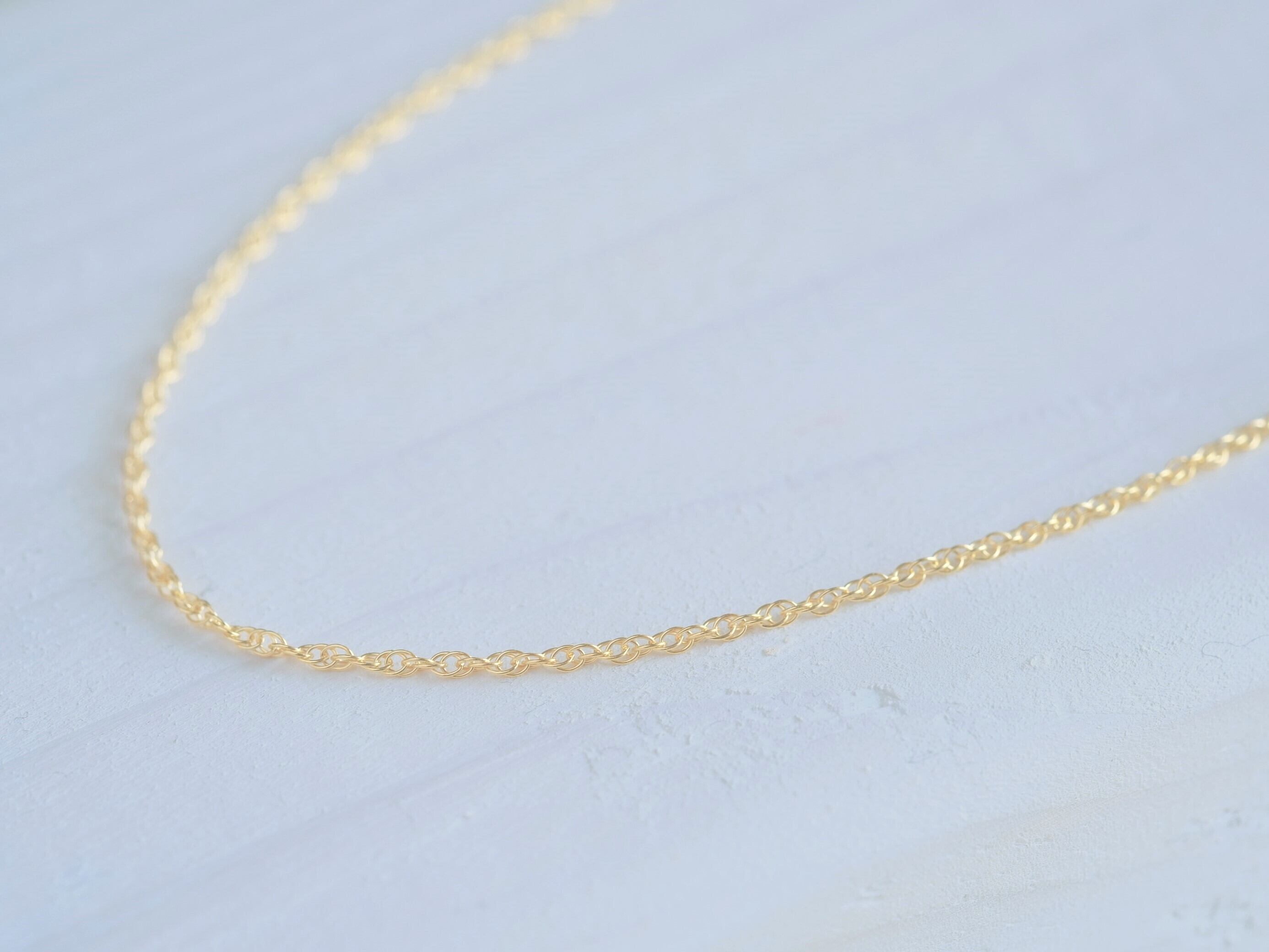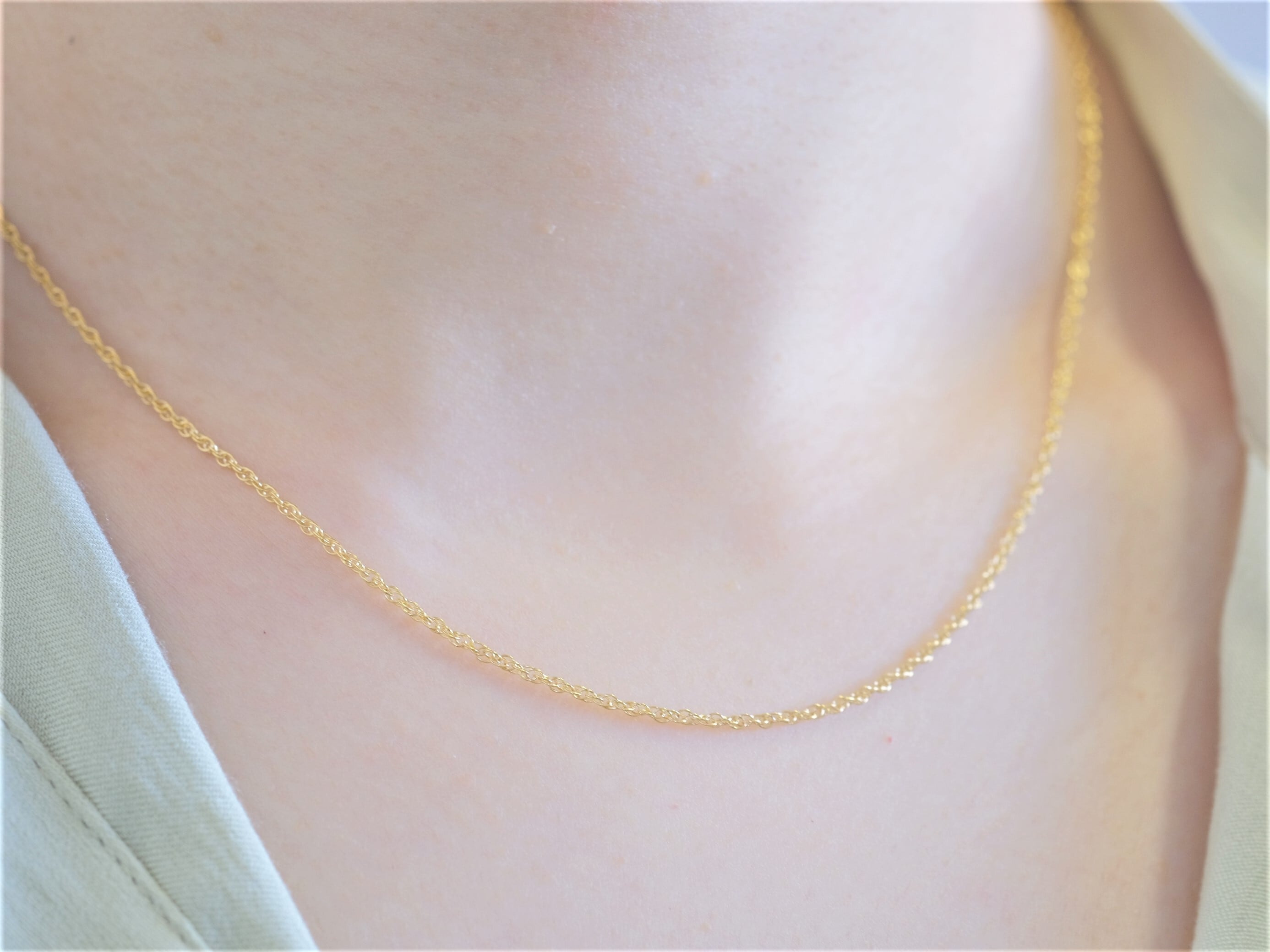 繊細にチェーンパーツが編みこまれたデザインの華奢なロープチェーン。