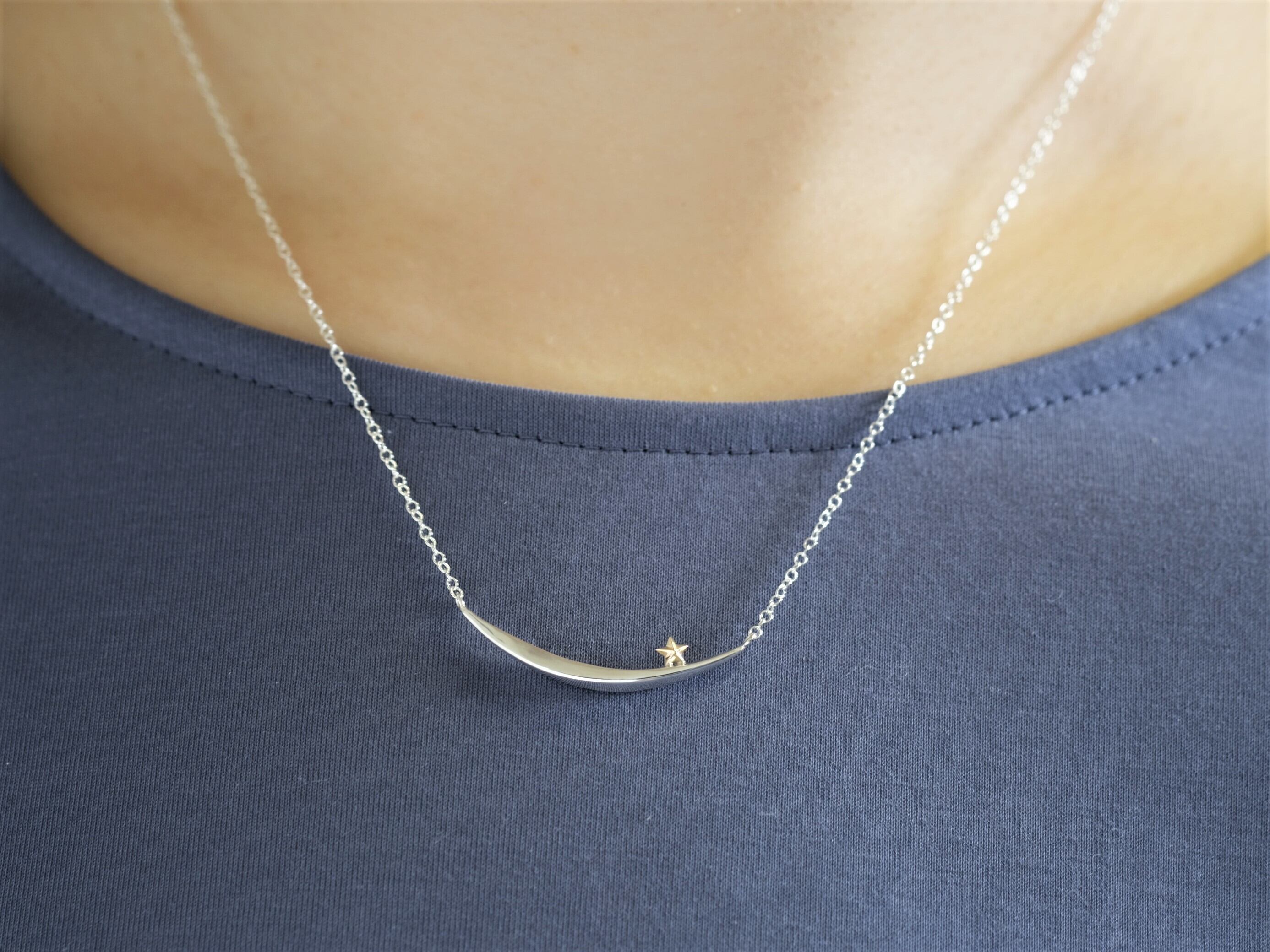 弧を描いたカーブモチーフ(silver925)に小さなK10の星を乗せたシンプルながらも遊び心のあるネックレス