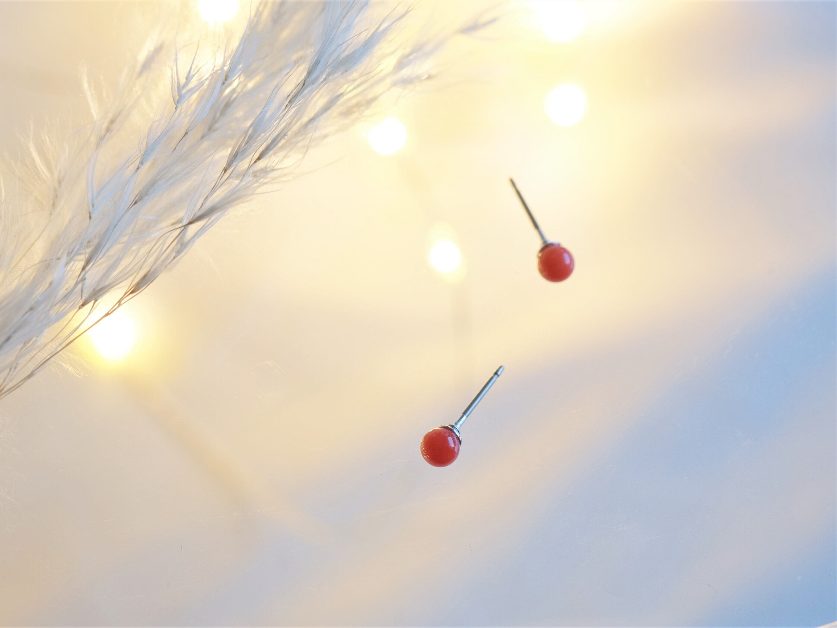 red coral pierce:胡渡珊瑚ピアス チタンポスト