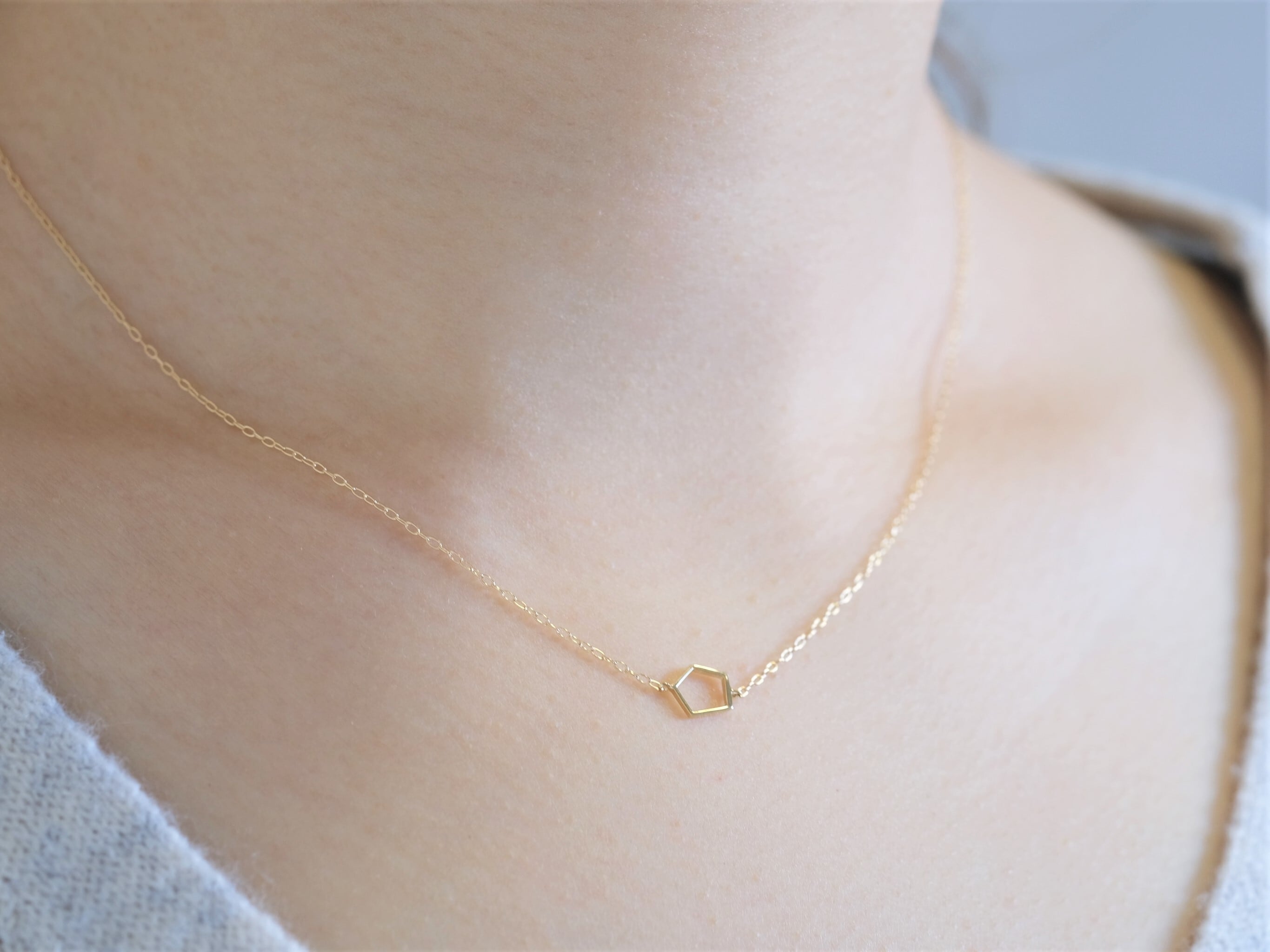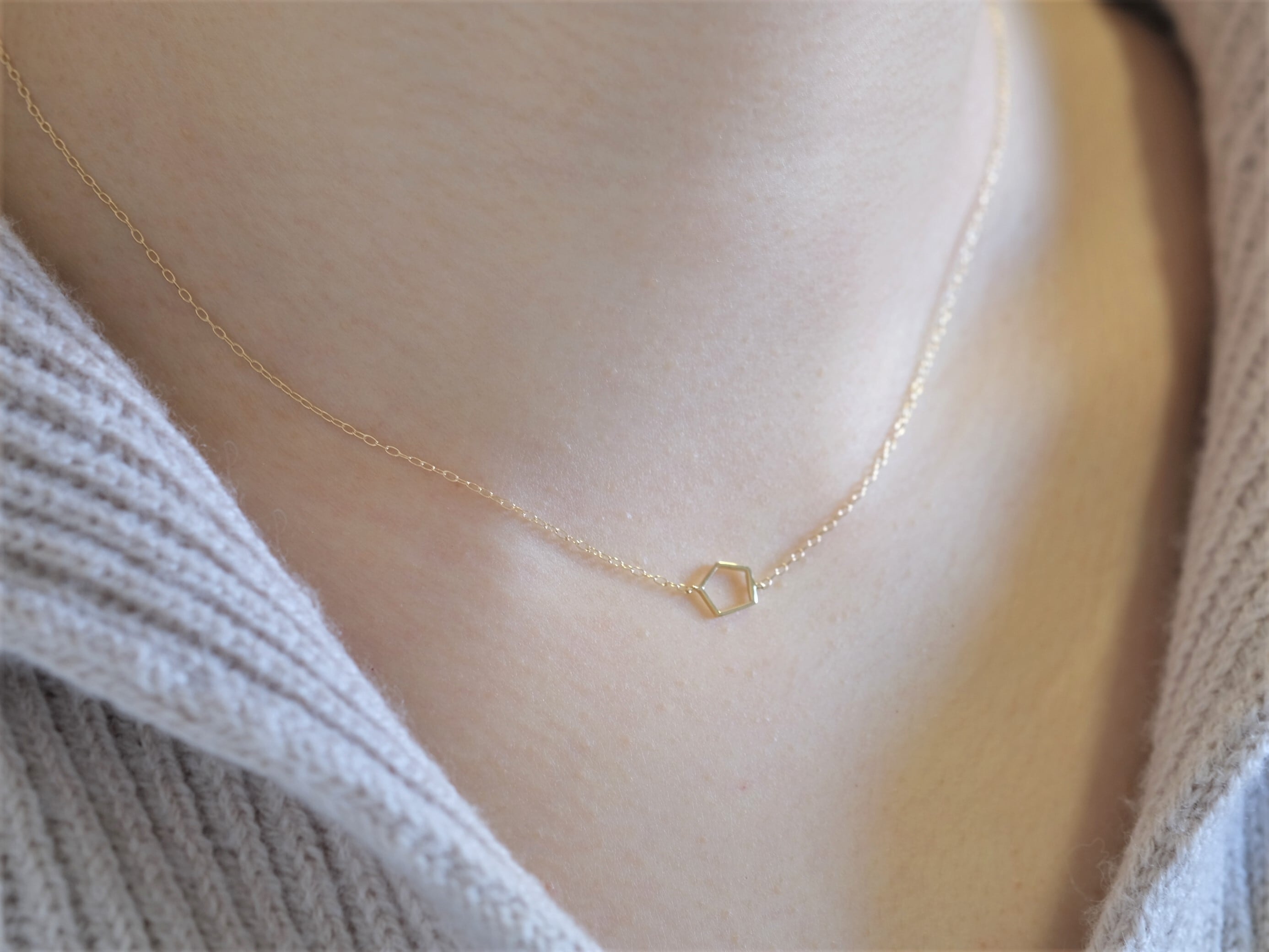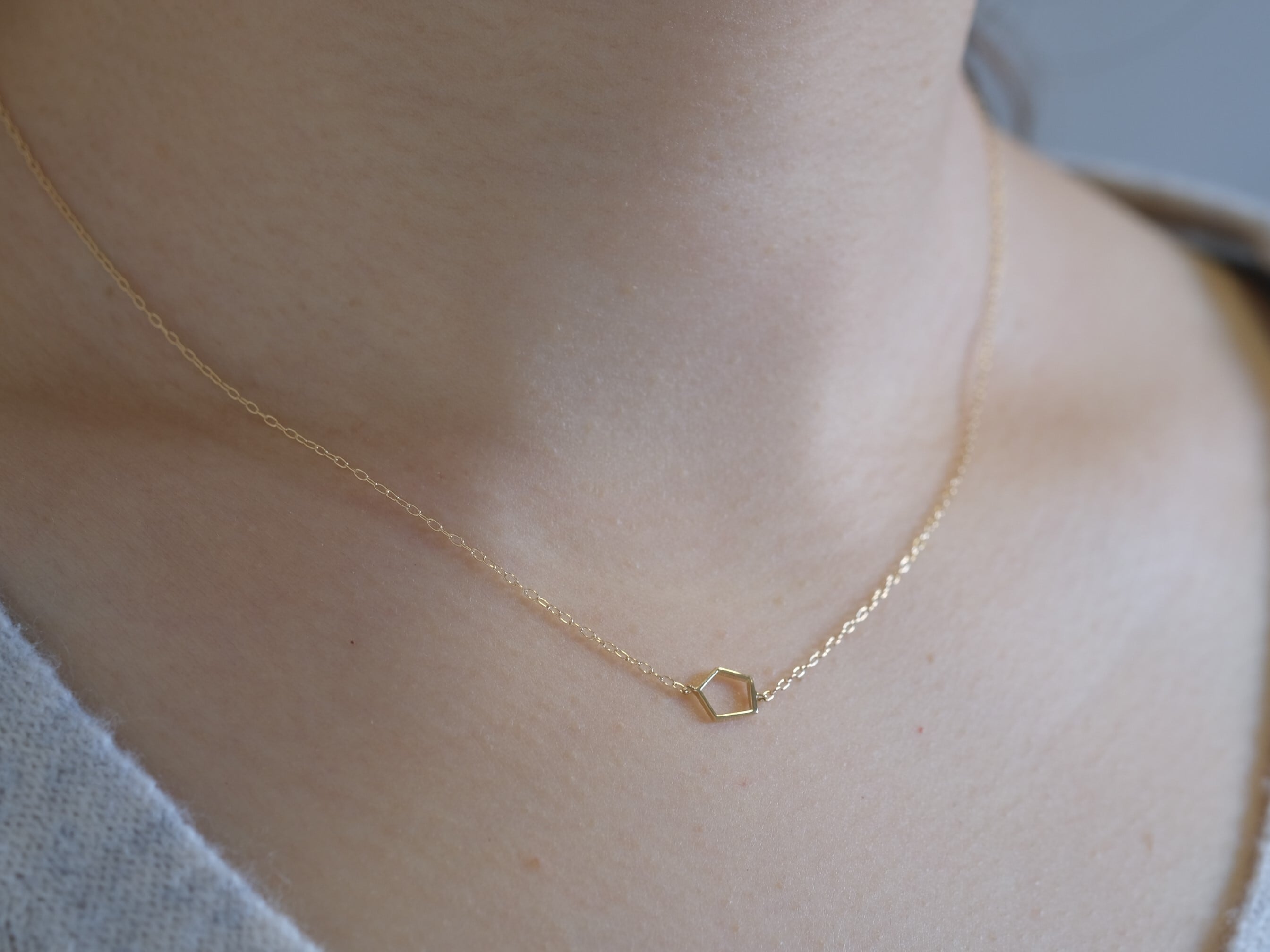 五角形は古くから、幸せをもたらす多角形・調和をもたらすシンボルとしてさまざまなアイコンに使われてきました。付け心地の軽いネックレスでお守り代わりに身に着けられます。