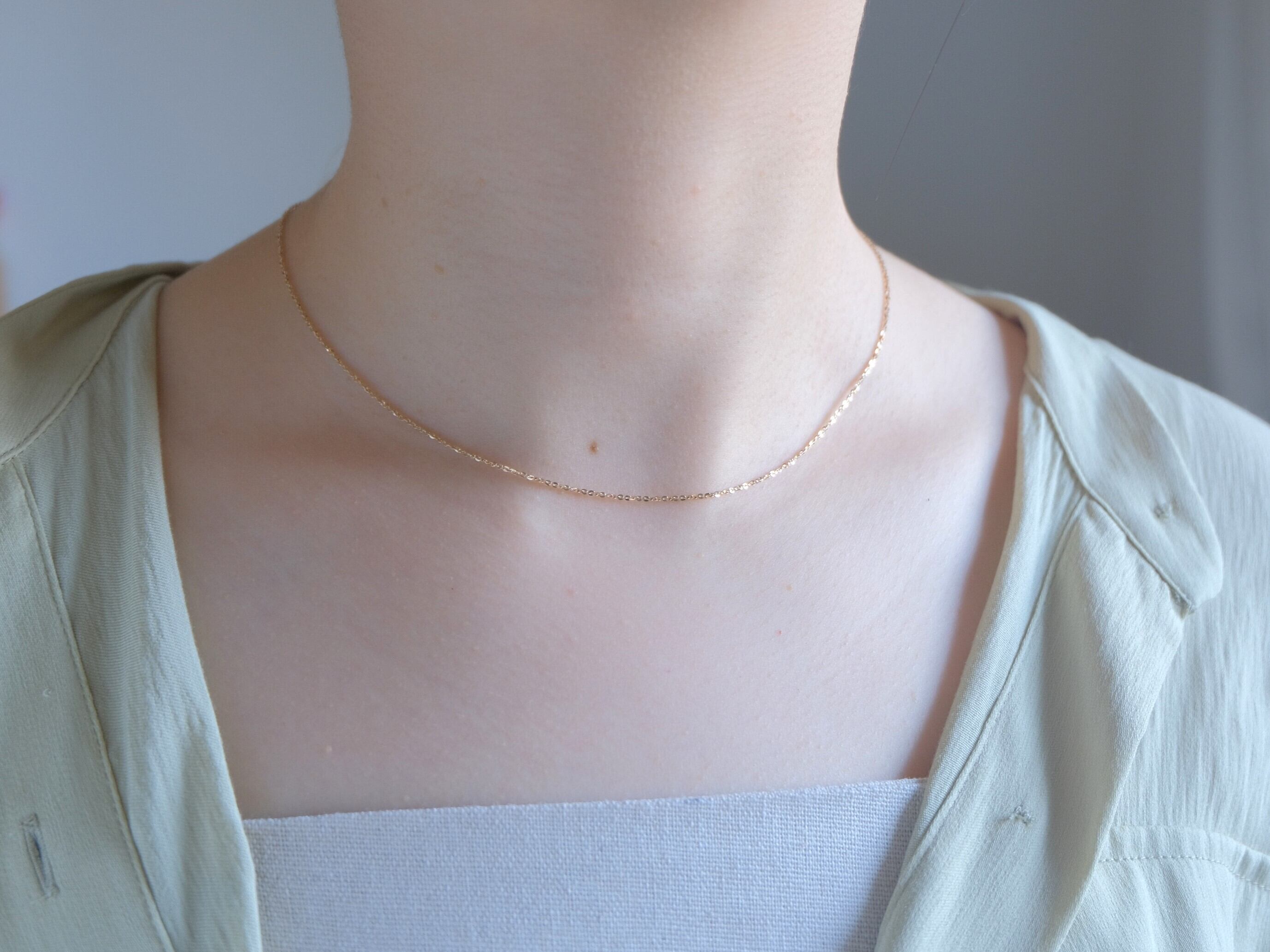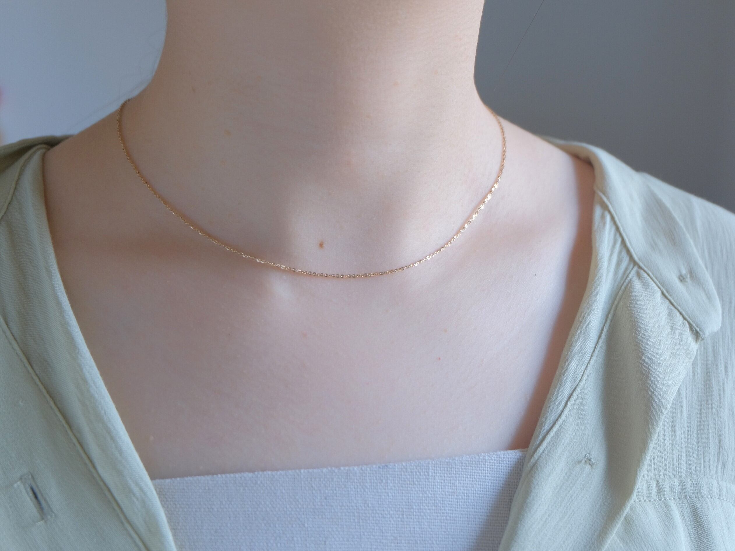 チョーカーのように合わせられるトレンドのチェーンネックレスシリーズにK10ygの上質素材のチェーンが加わりました。