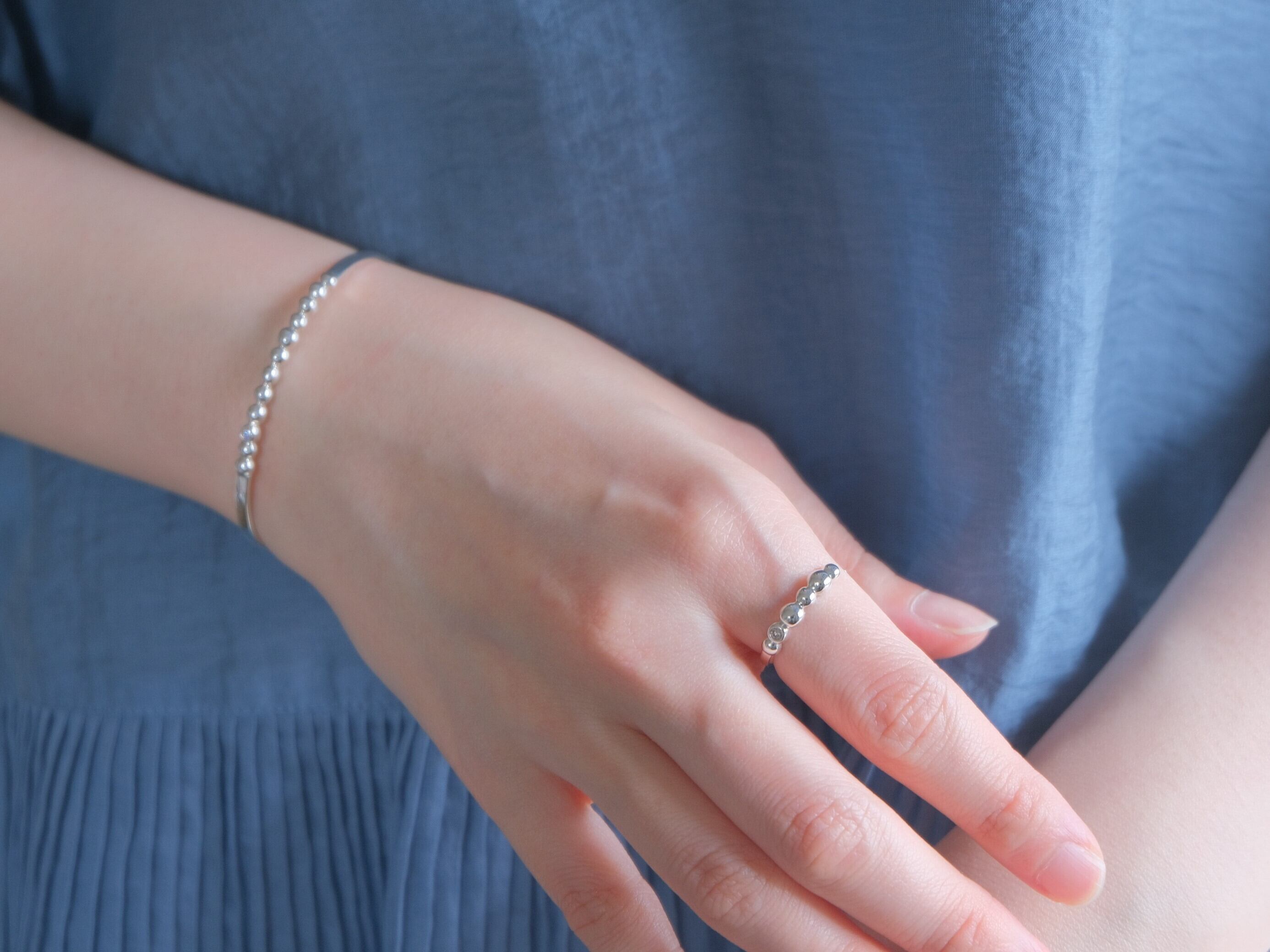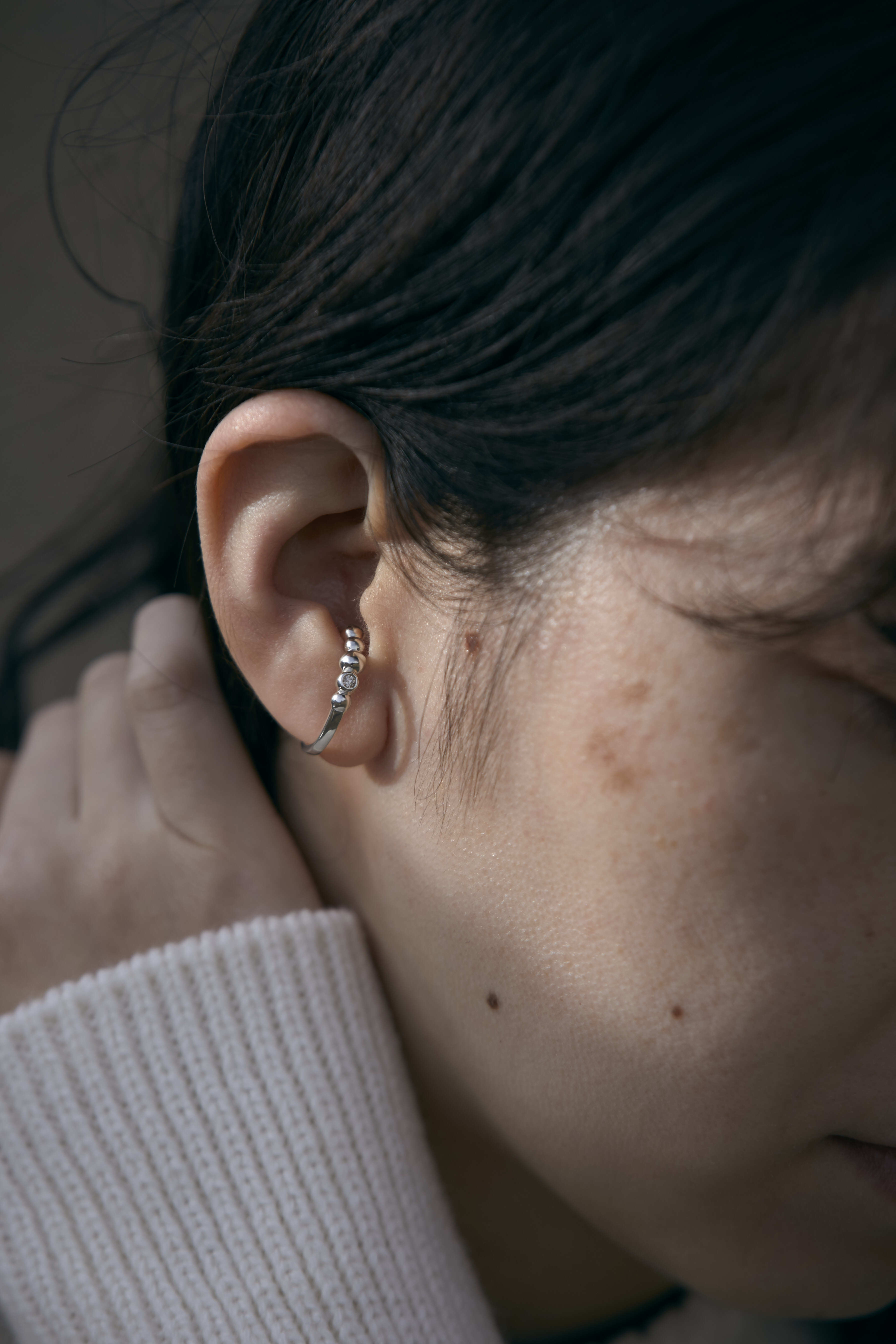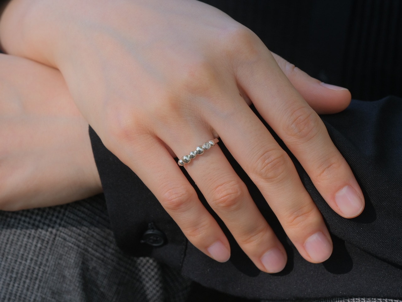 ぽこぽことした丸粒を連ねたデザインに、ダイヤモンドを一粒留めて日常使いできるリングに仕上げました。イヤーカフとしても着用できます。
