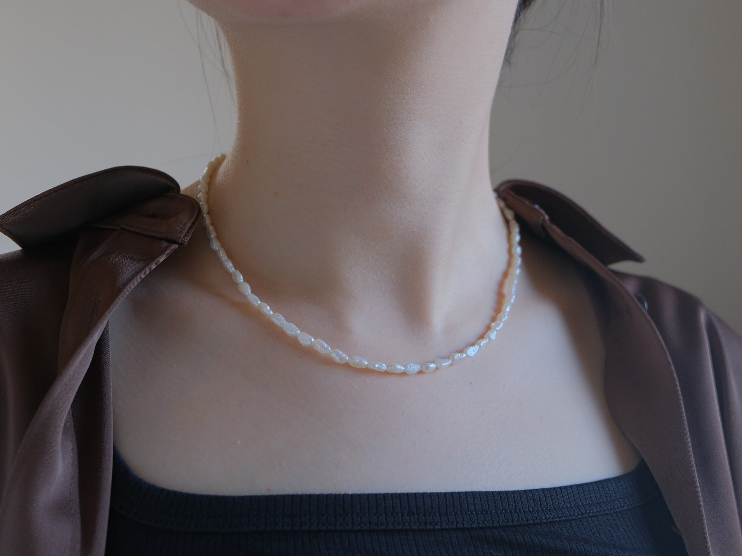 小粒の淡水パールを繋いだ上品な印象のネックレス