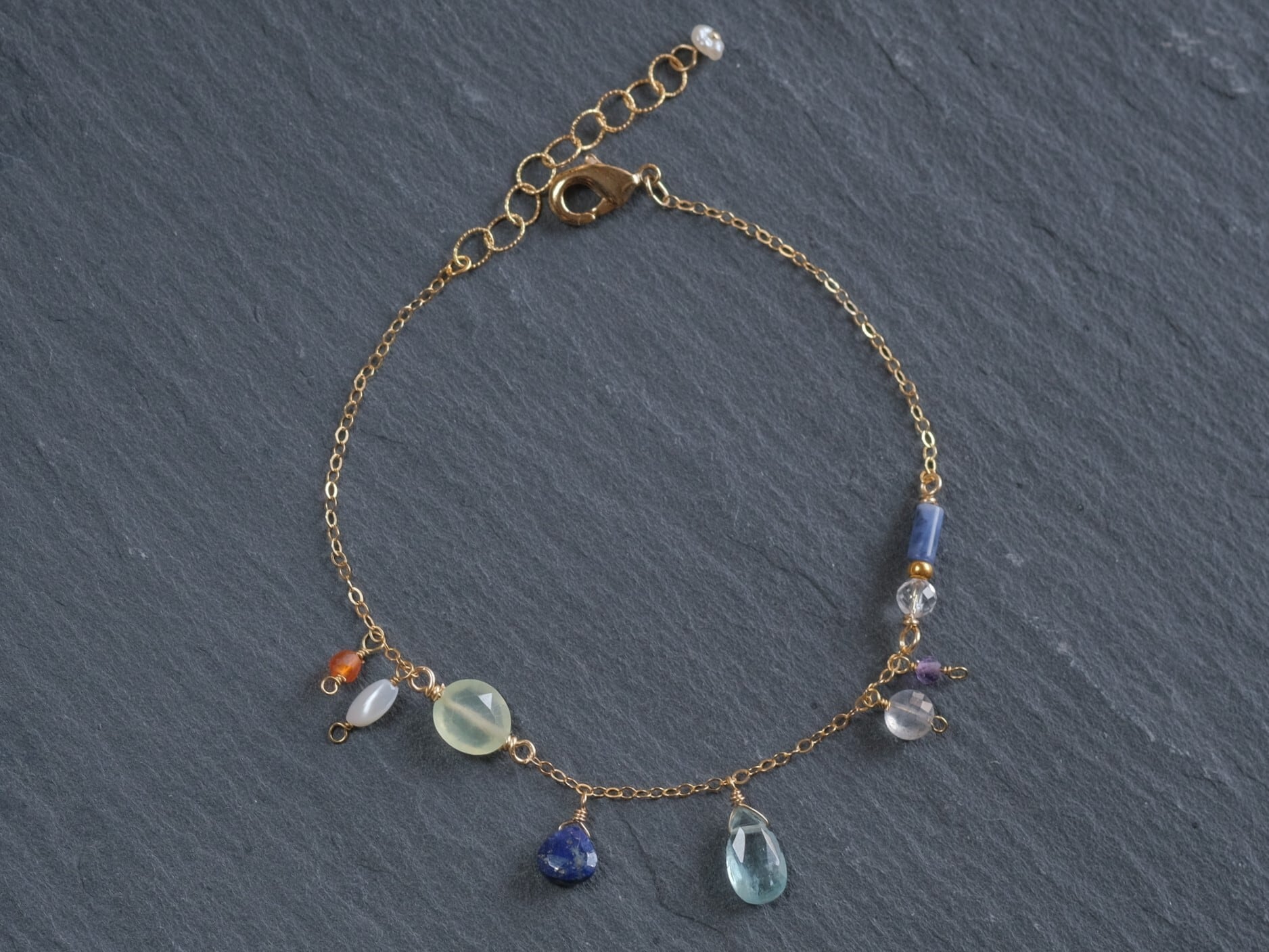 Sundlaug bracelet 天然石ブレスレット 宝石質スカイカイヤナイト×アメジスト×ペリドット×ラブラドライト