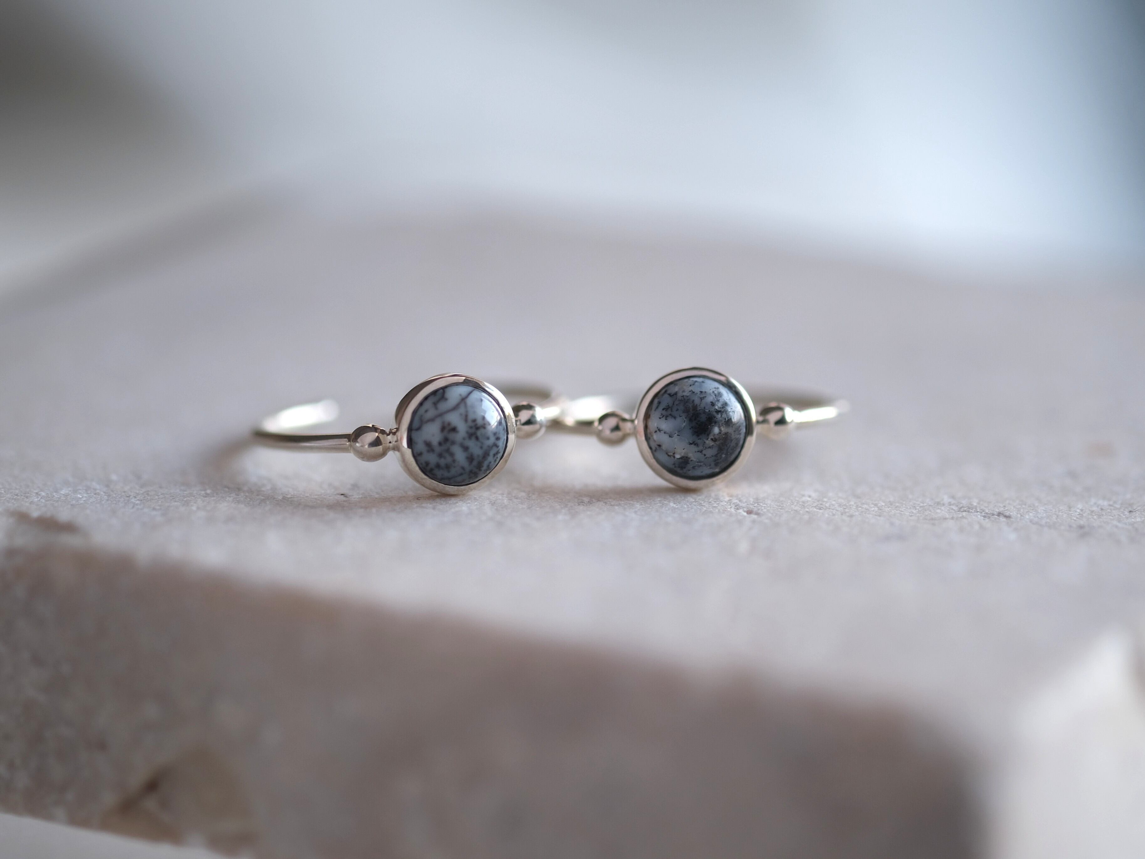 つるんとしたドーム状のカボションカットのデンドリティックオパールがポイントのシルバーリング