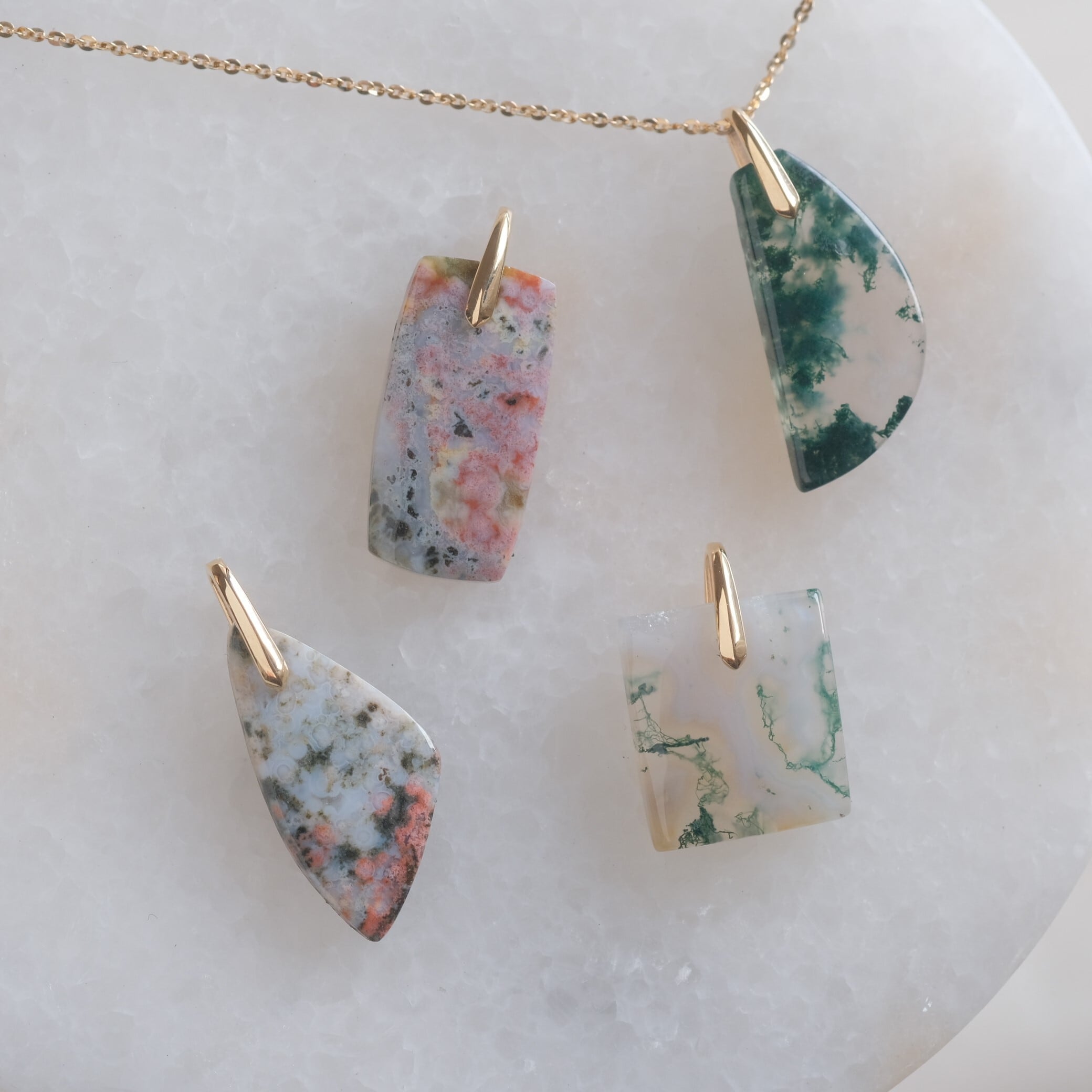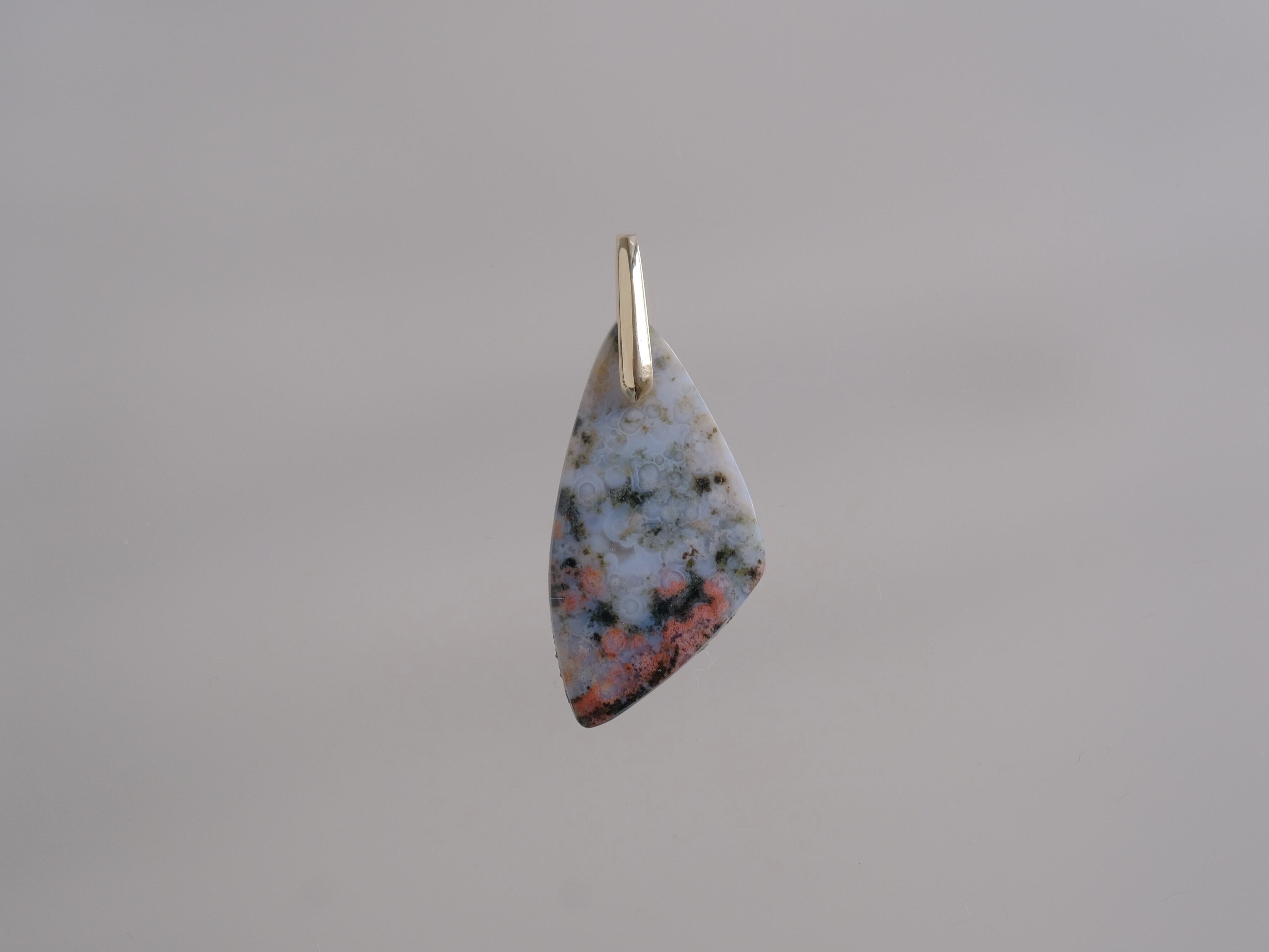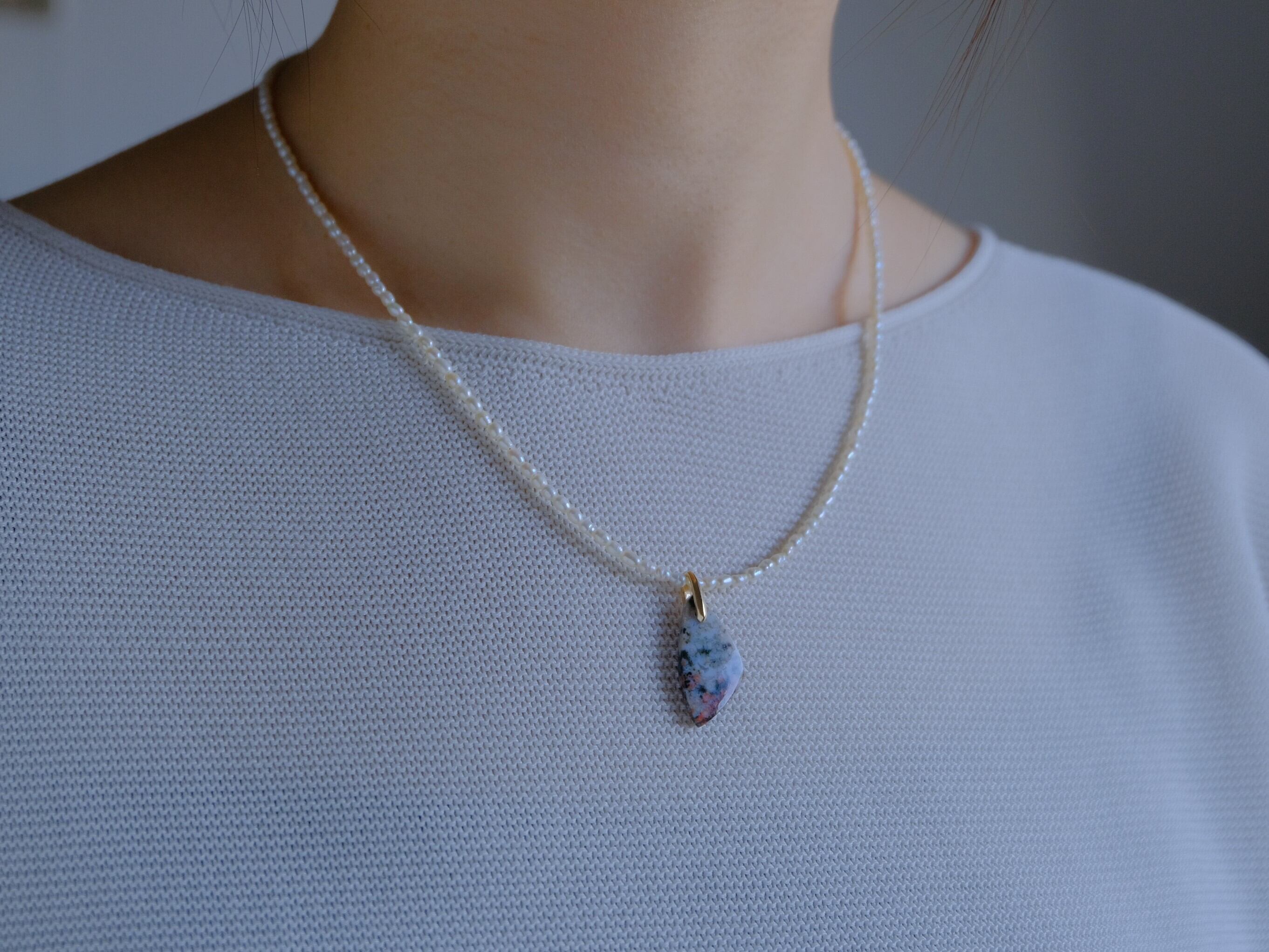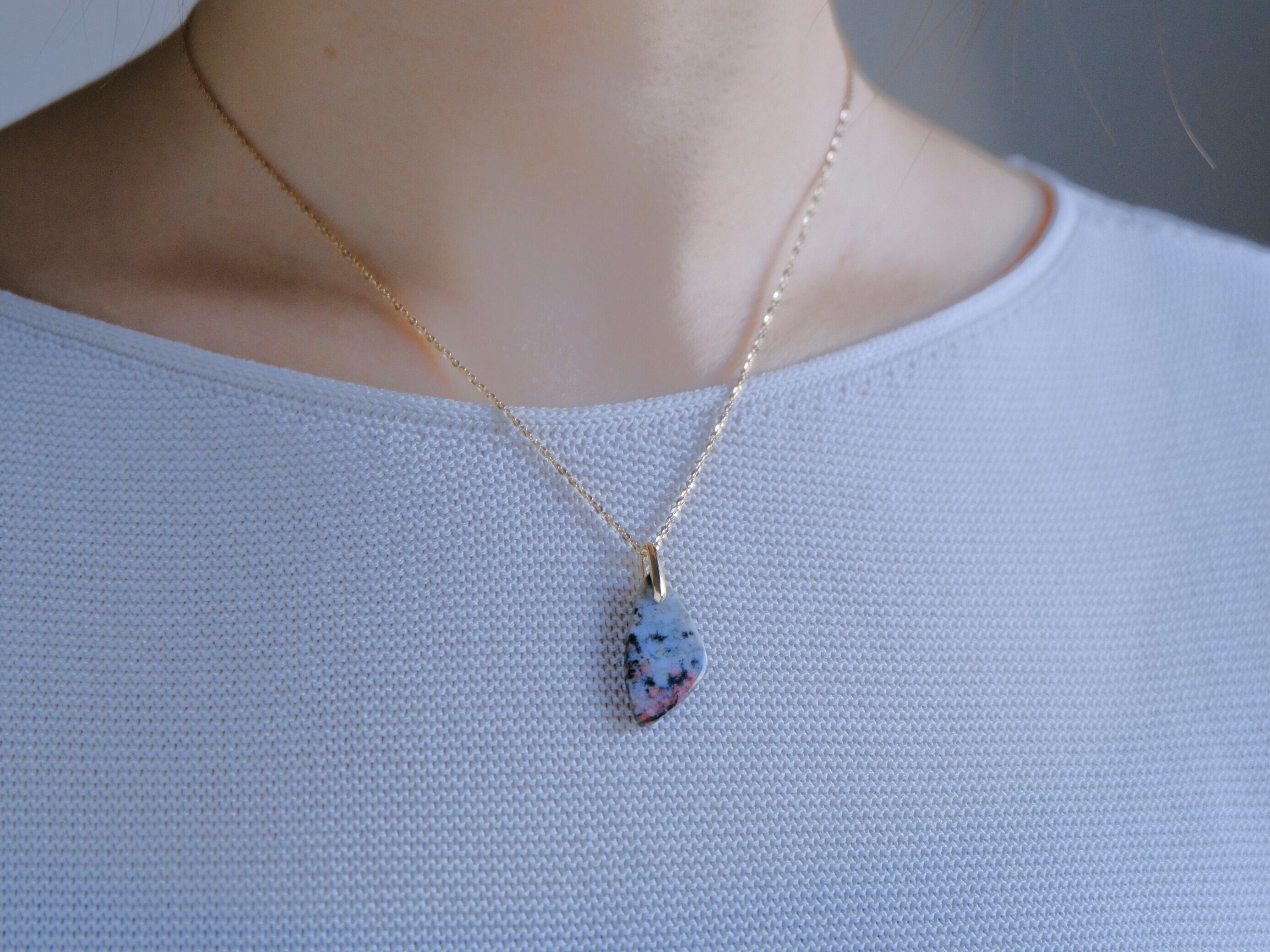 Ocean Jasper stone K10YG オーシャンジャスパー 天然石ネックレスチャーム ピンク ペールグレーブルー